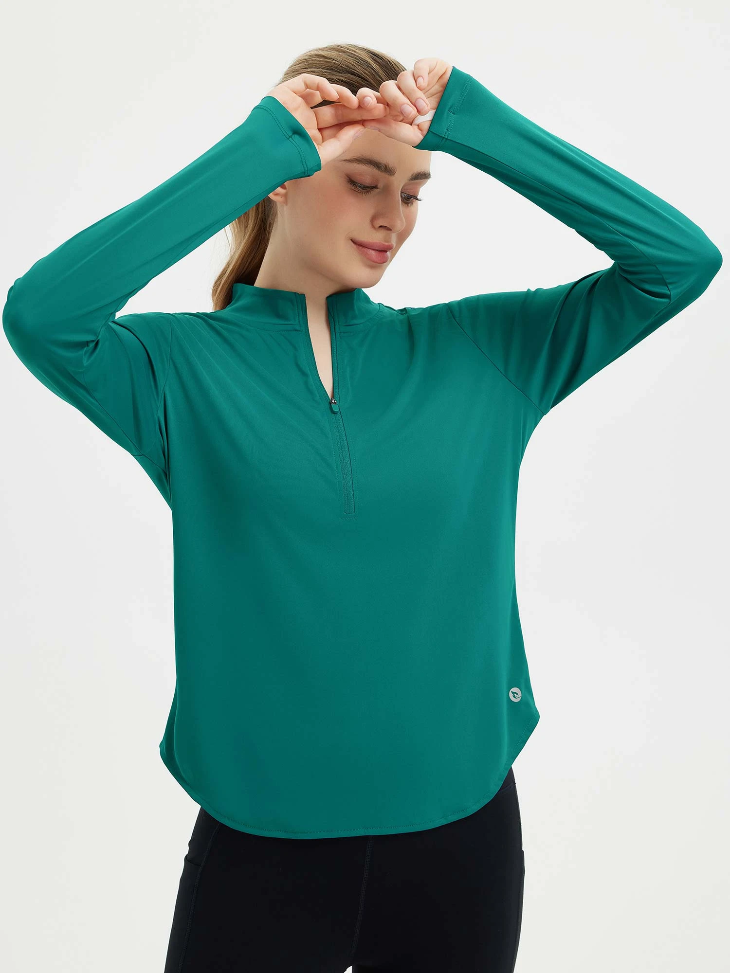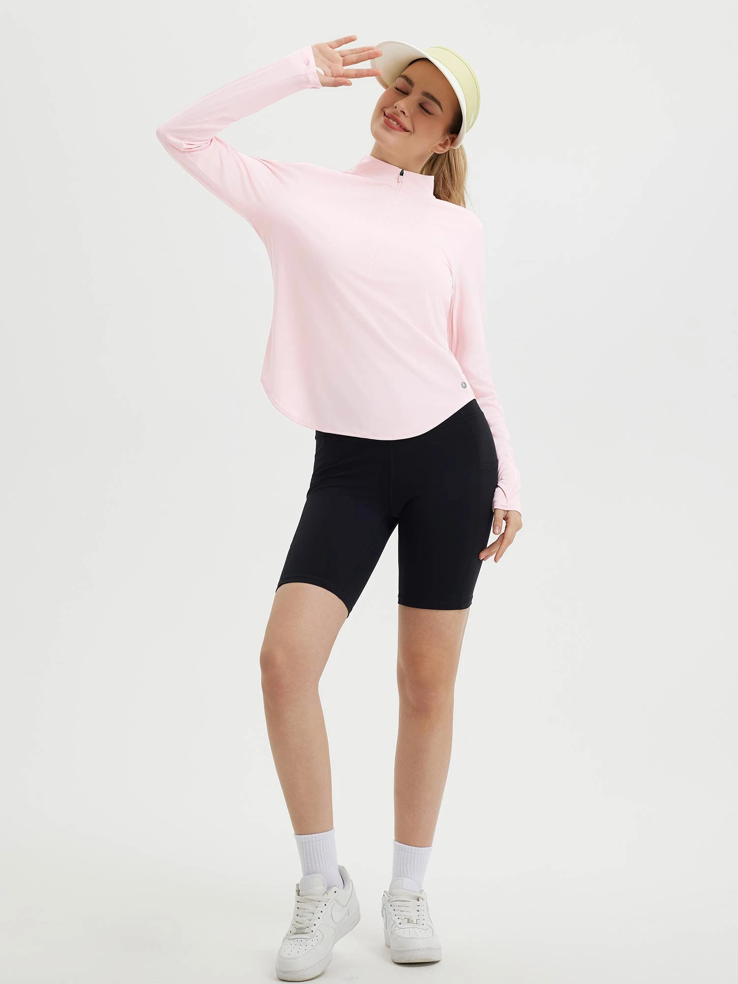 - Almost Half Zip & Relaxed: Reduces neck pressure and adds ventilation. Princess line design for a better body fit and elegant lines.