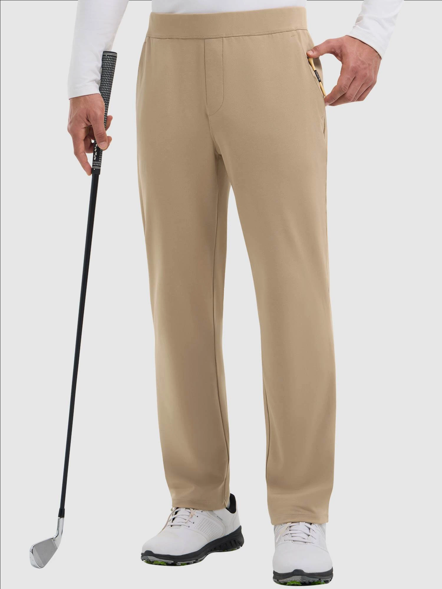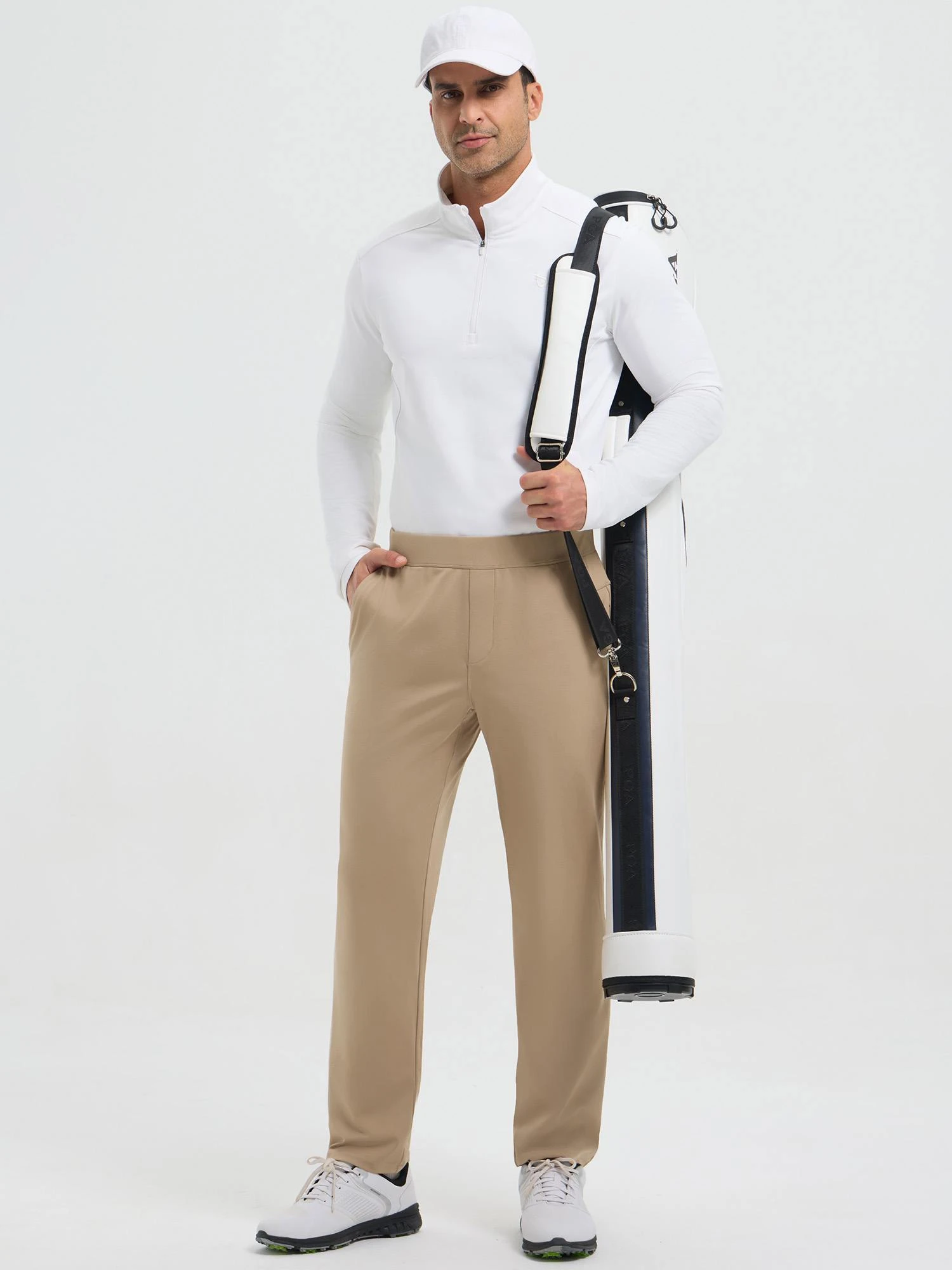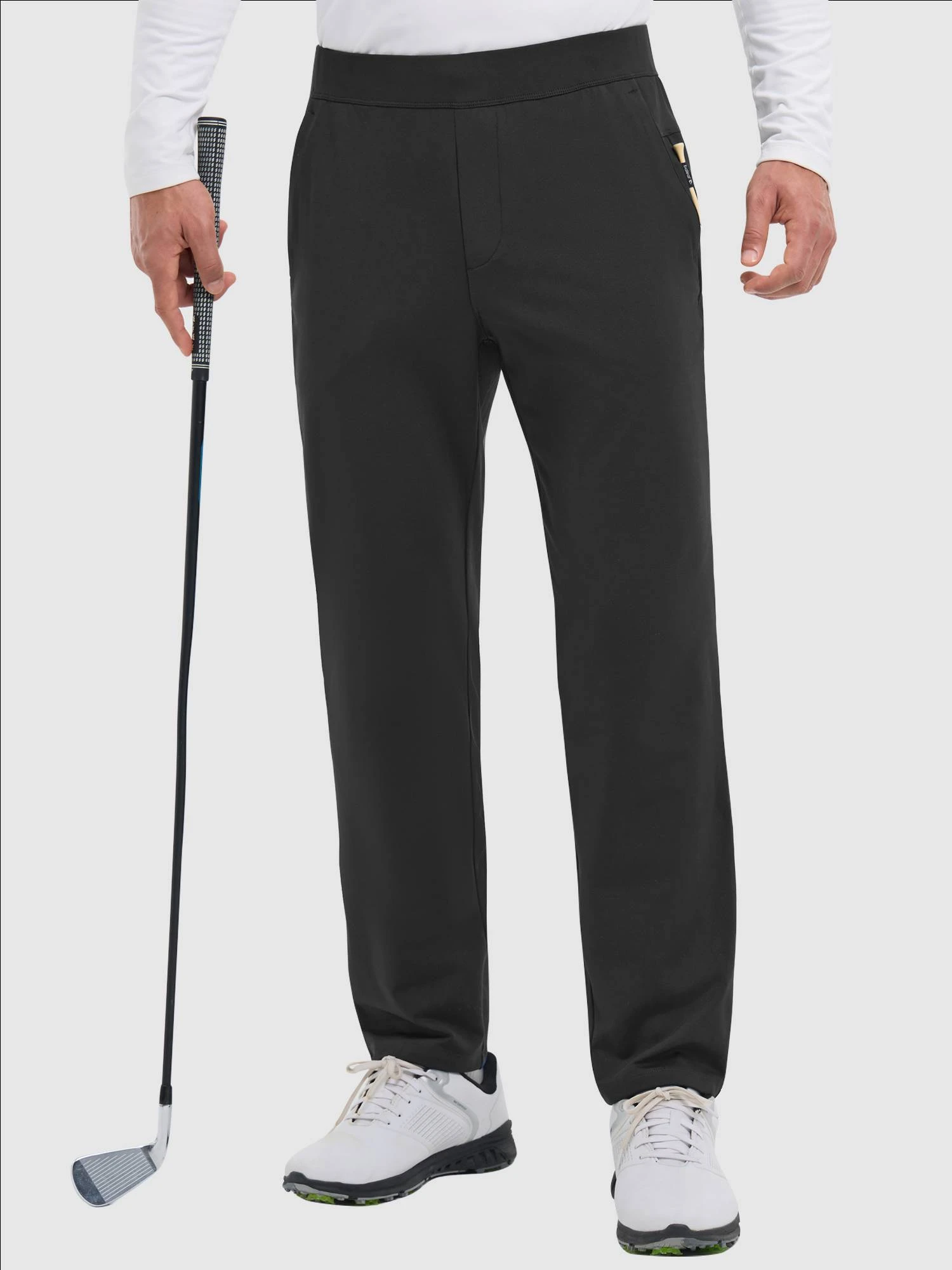 - 3 zippered utility pockets: 2 front slanted pockets and 1 right-hip pocket for golf balls, gloves, or small essentials