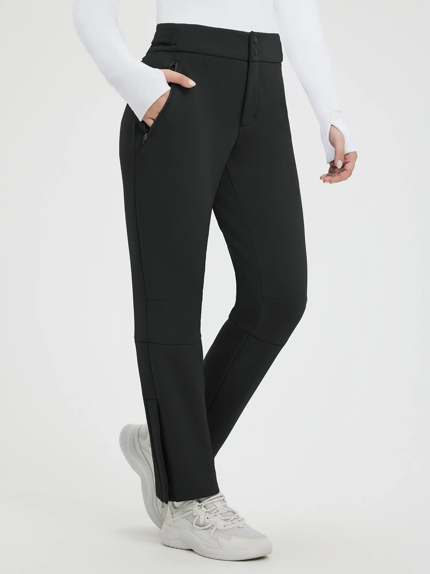 Adjustable Waistband & 3D Knee Cutting: High-waisted design with hook-and-loop fasteners for easy tightening and a secure fit; articulated knee design ensures mobility and flexibility.