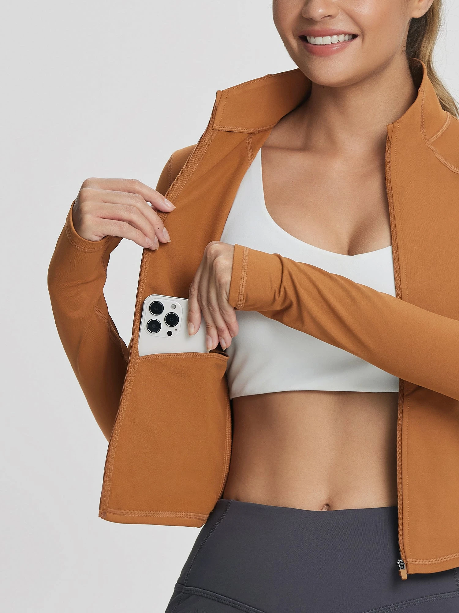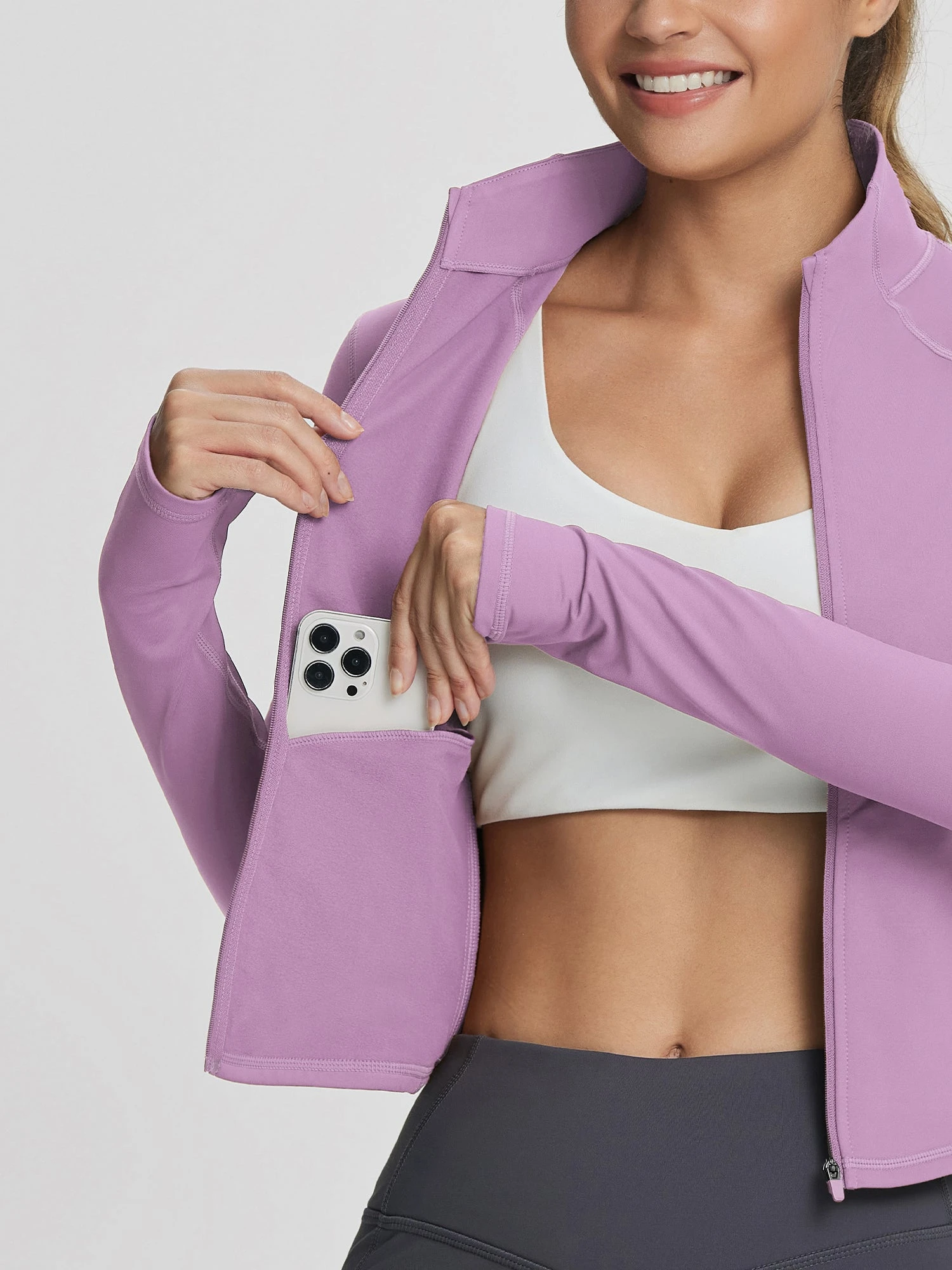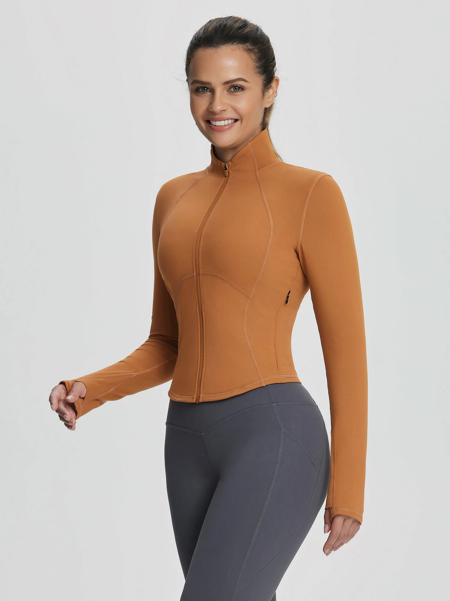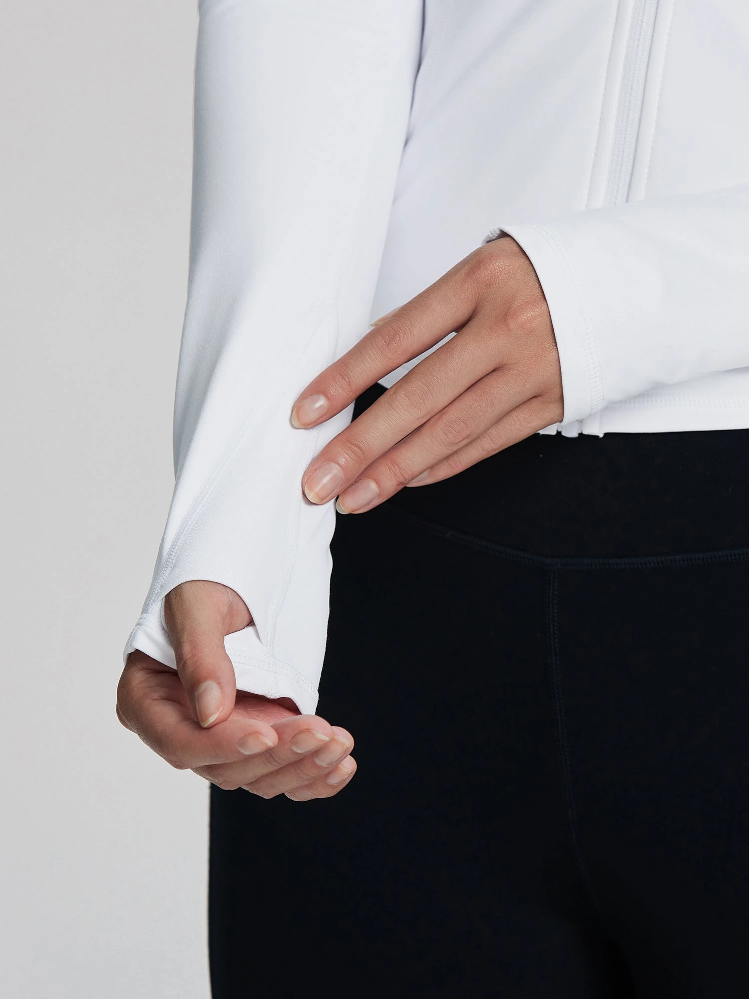 - Full-zip design with thumbholes for securing sleeves and added warmth