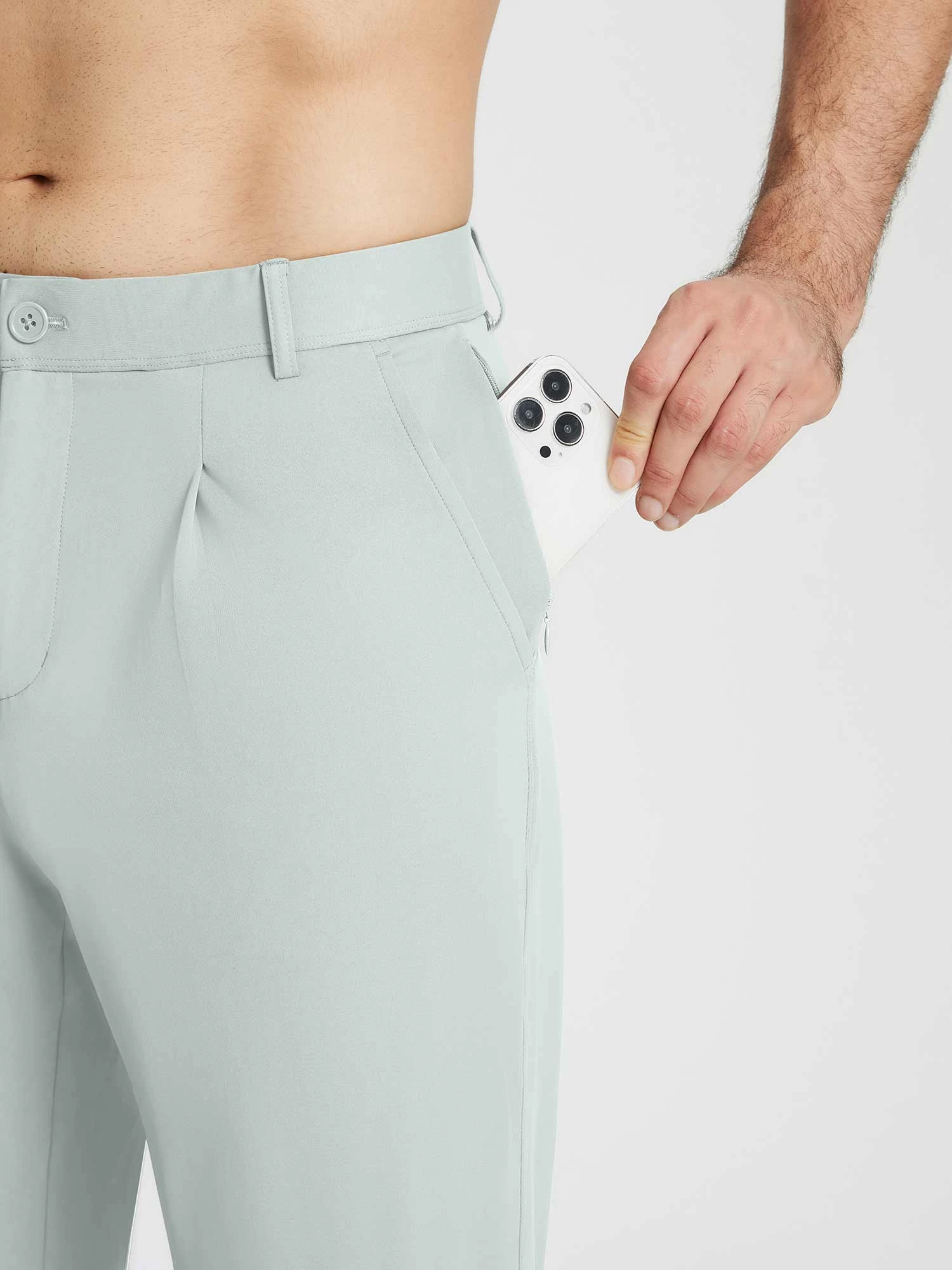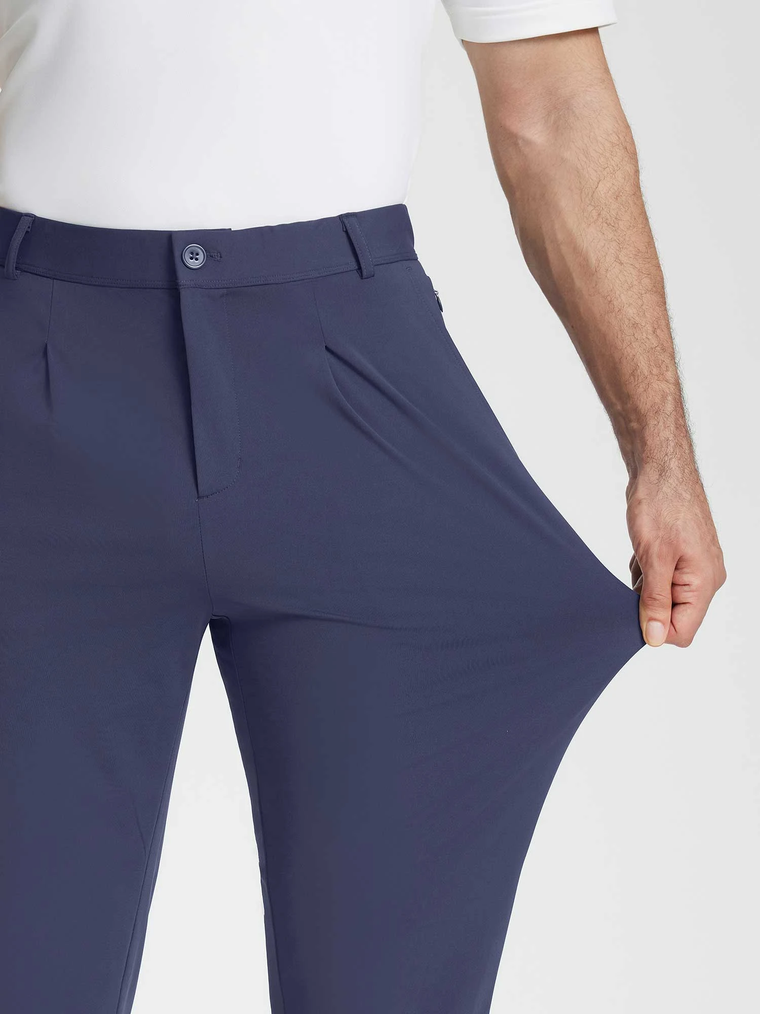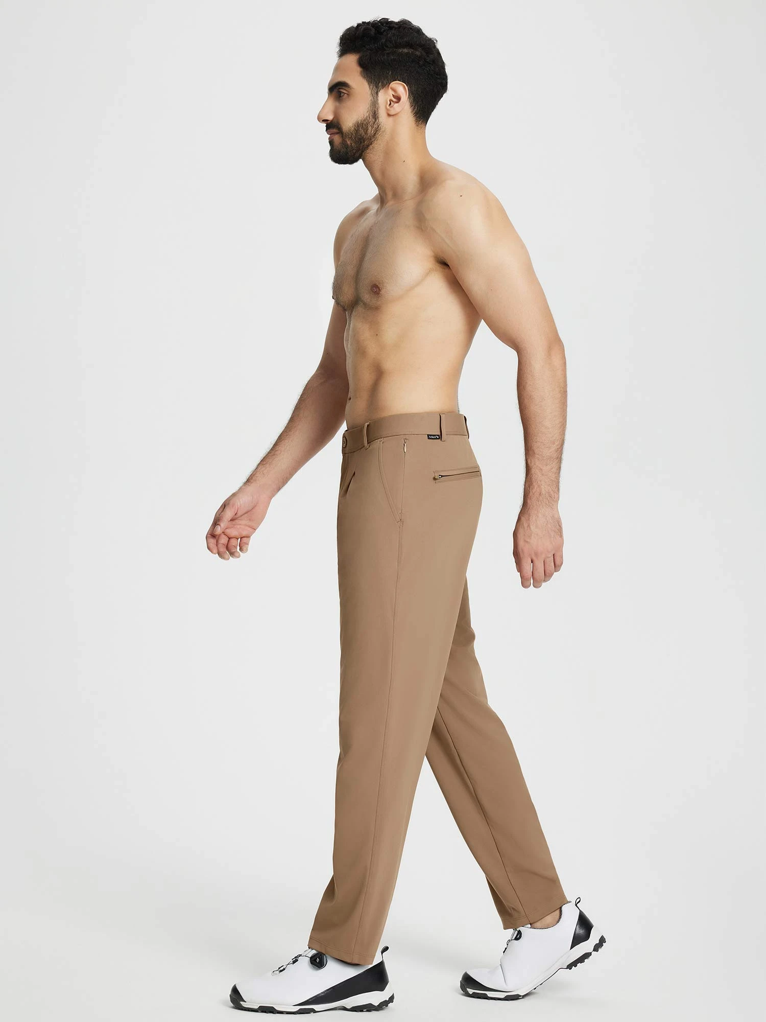 - Zip fly with a half-circle elastic waistband for a comfortable, personalized fit