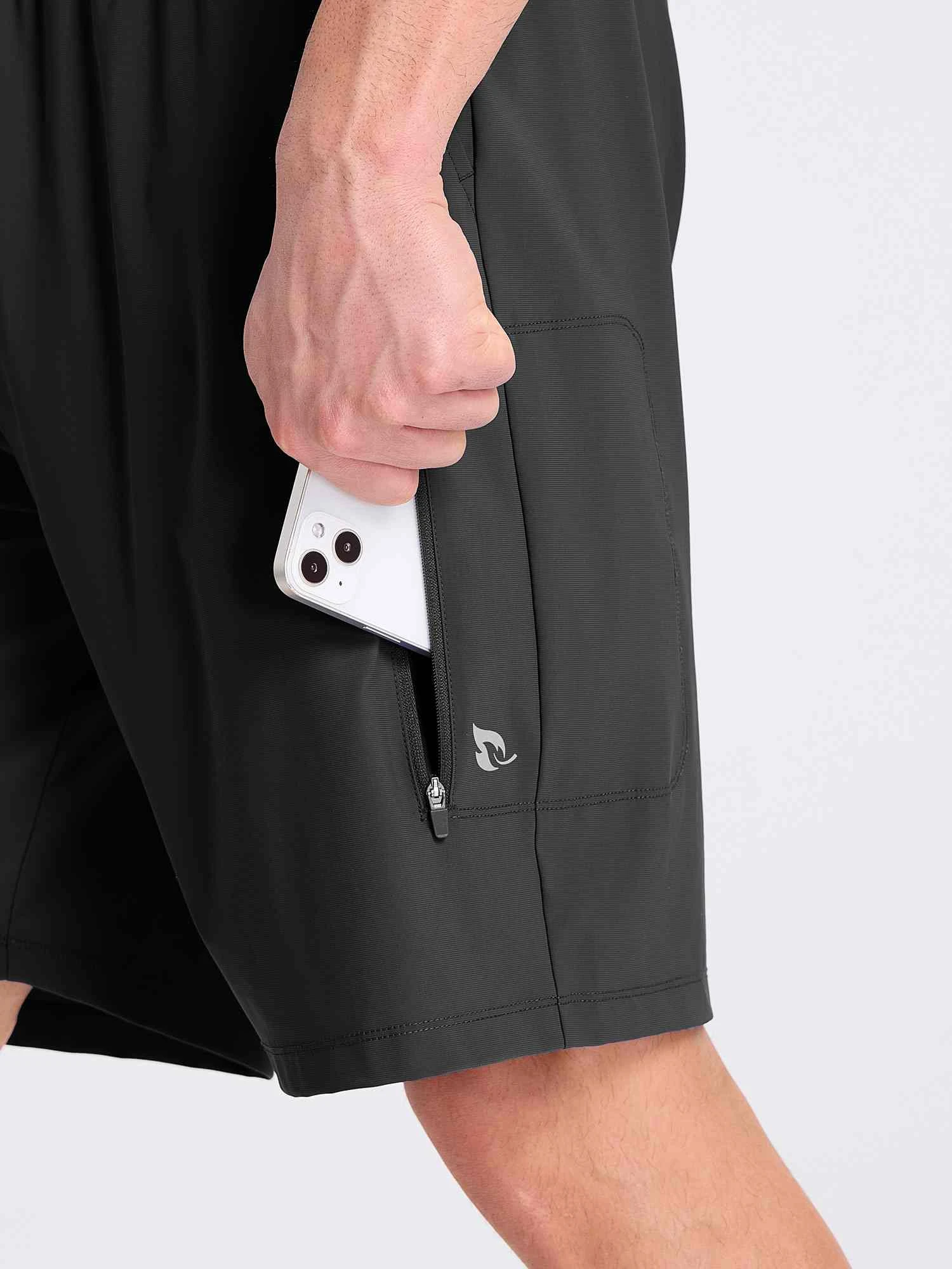 Funcitonal Pockets & Faux Fly: These running shorts feature 2 side pockets and 1 zipper pocket that allow you to conveniently store your essentials like keys, cards, or smartphone during your workout, the faux fly design suitable for various work and formal occasions.