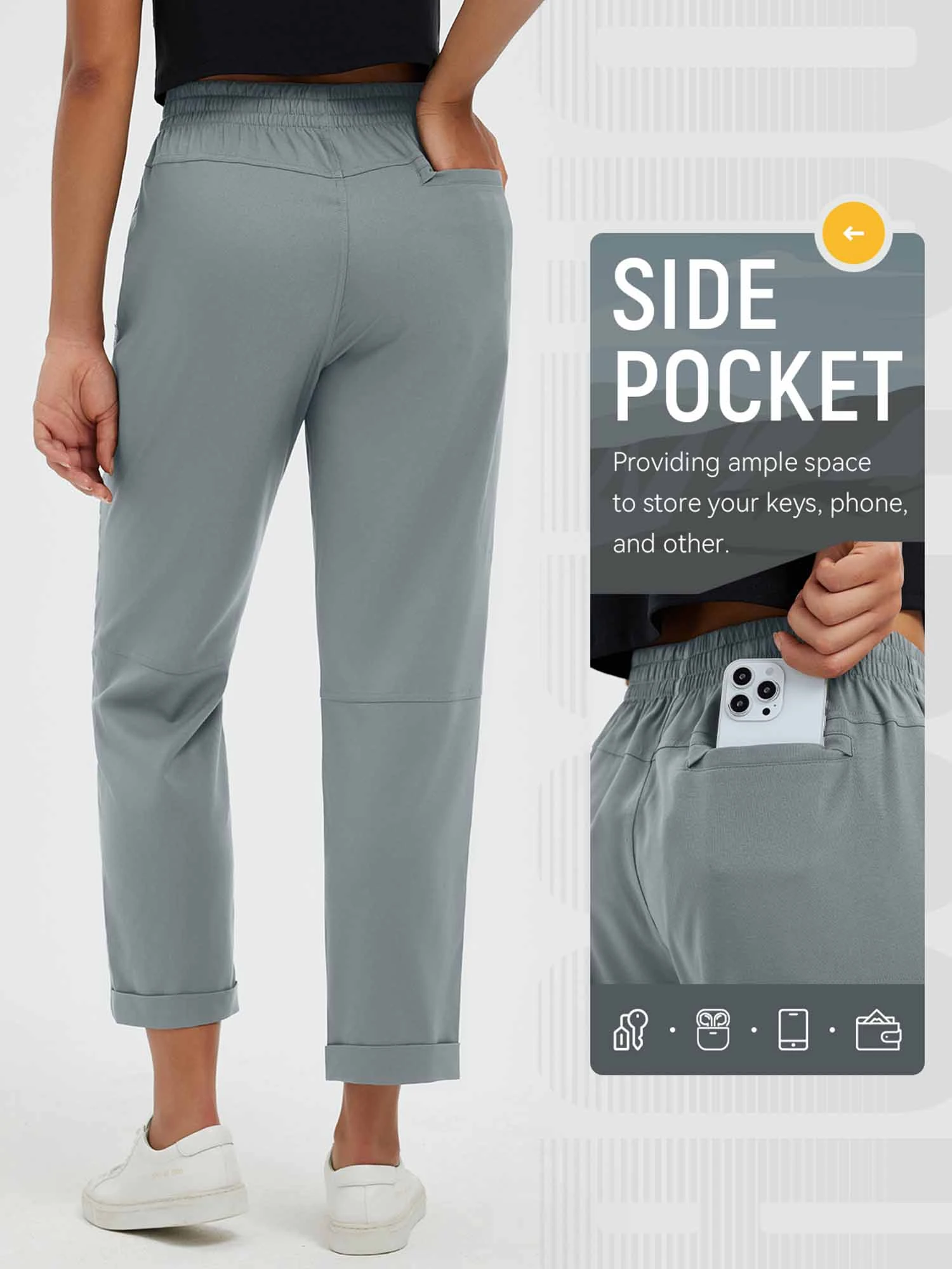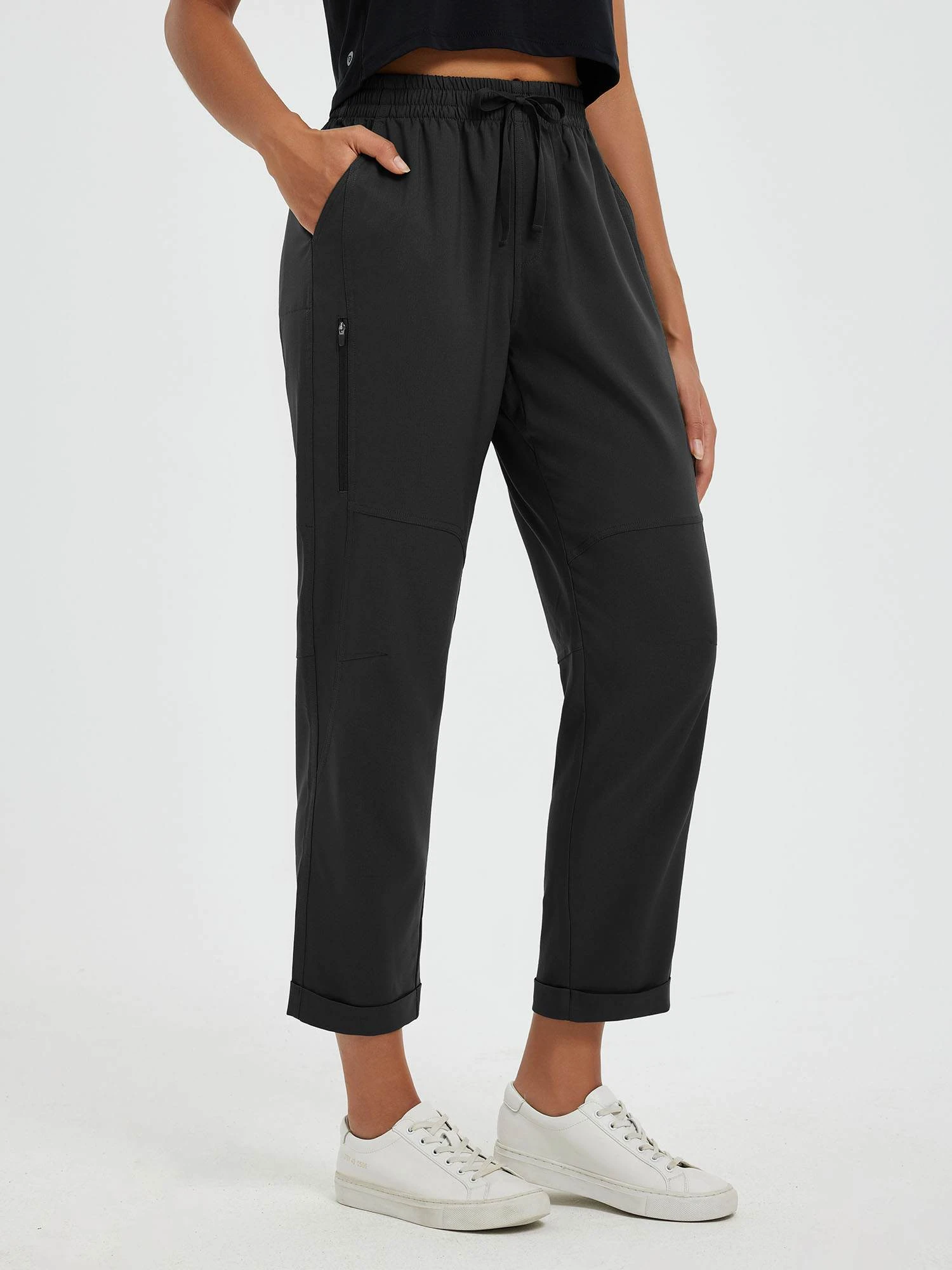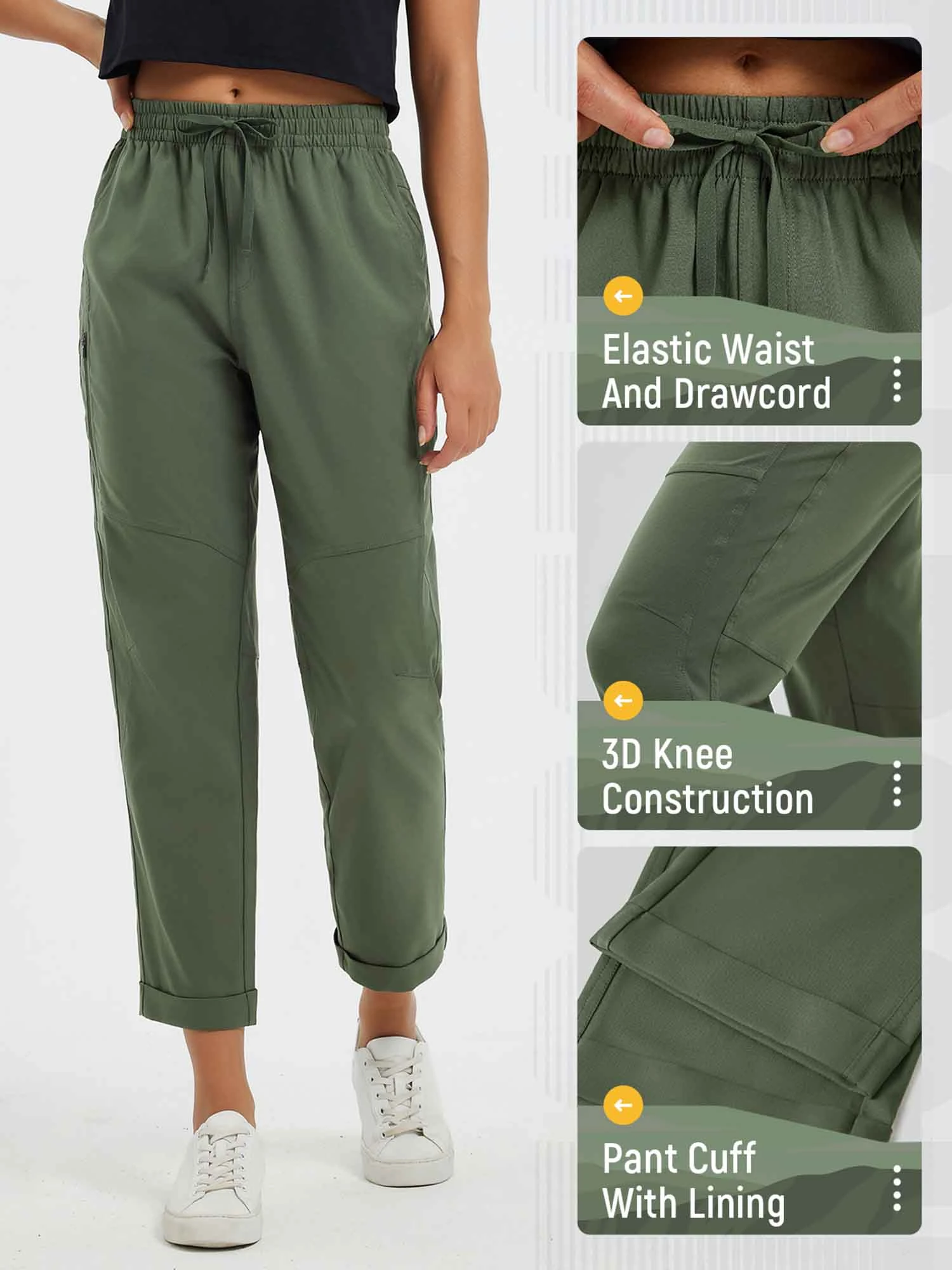 【Multiple pockets】Five pockets including two hand sides deep pockets and two front zip cargo pockets and one roomy rear pocket provide storage for your phones, keys and cards safely. Versatile pants for hiking, travel, jogger, lounge, errands, etc.