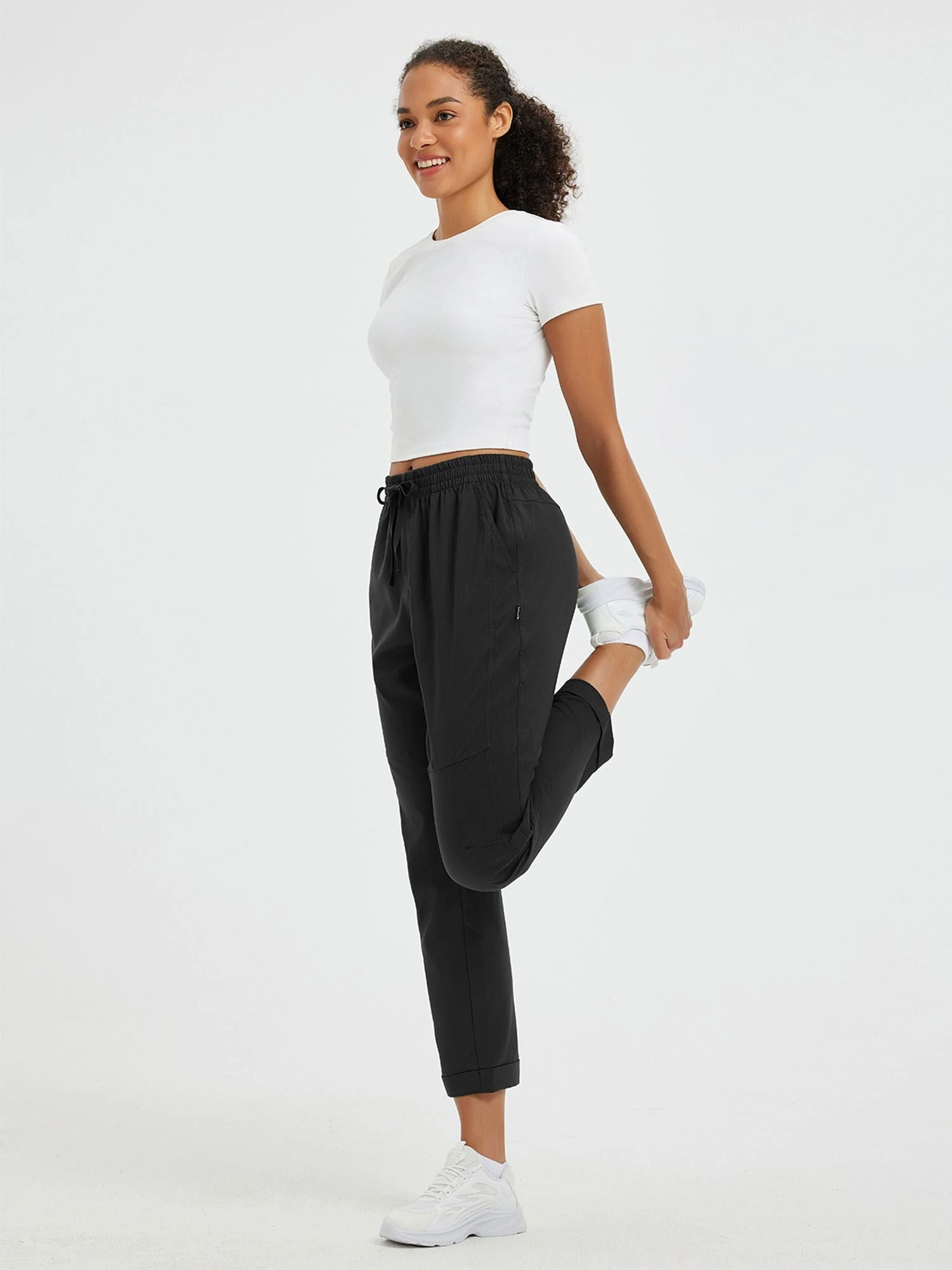 【Lightweight & Comfortable】4-Way stretch fabric features breathable and stretchy for comfy movement and ventilation.Baleaf lightweight joggers are a little roomy but not too baggy so it won’t stick to your skin but will wick your sweat quickly and brings you breezy feel.