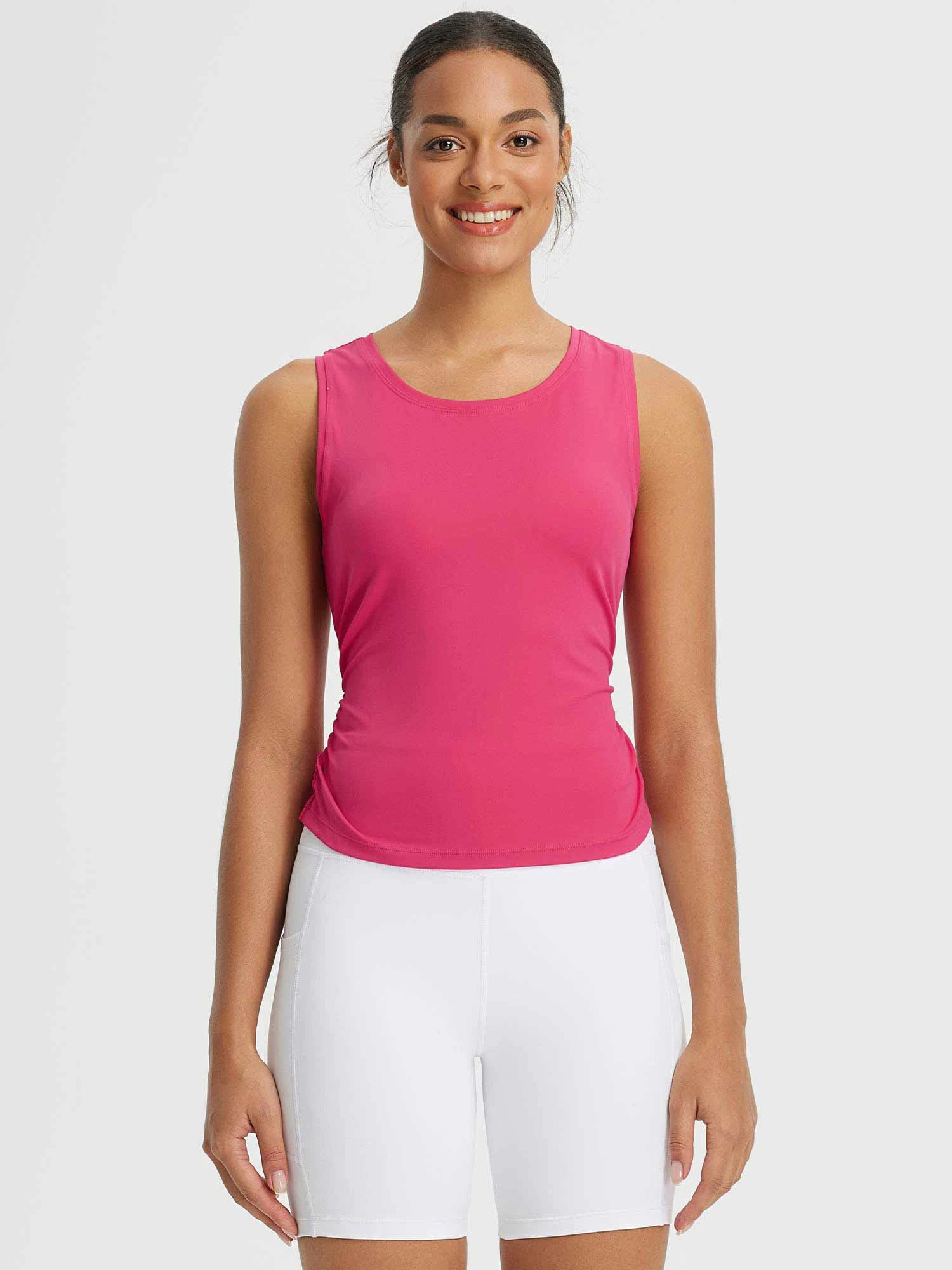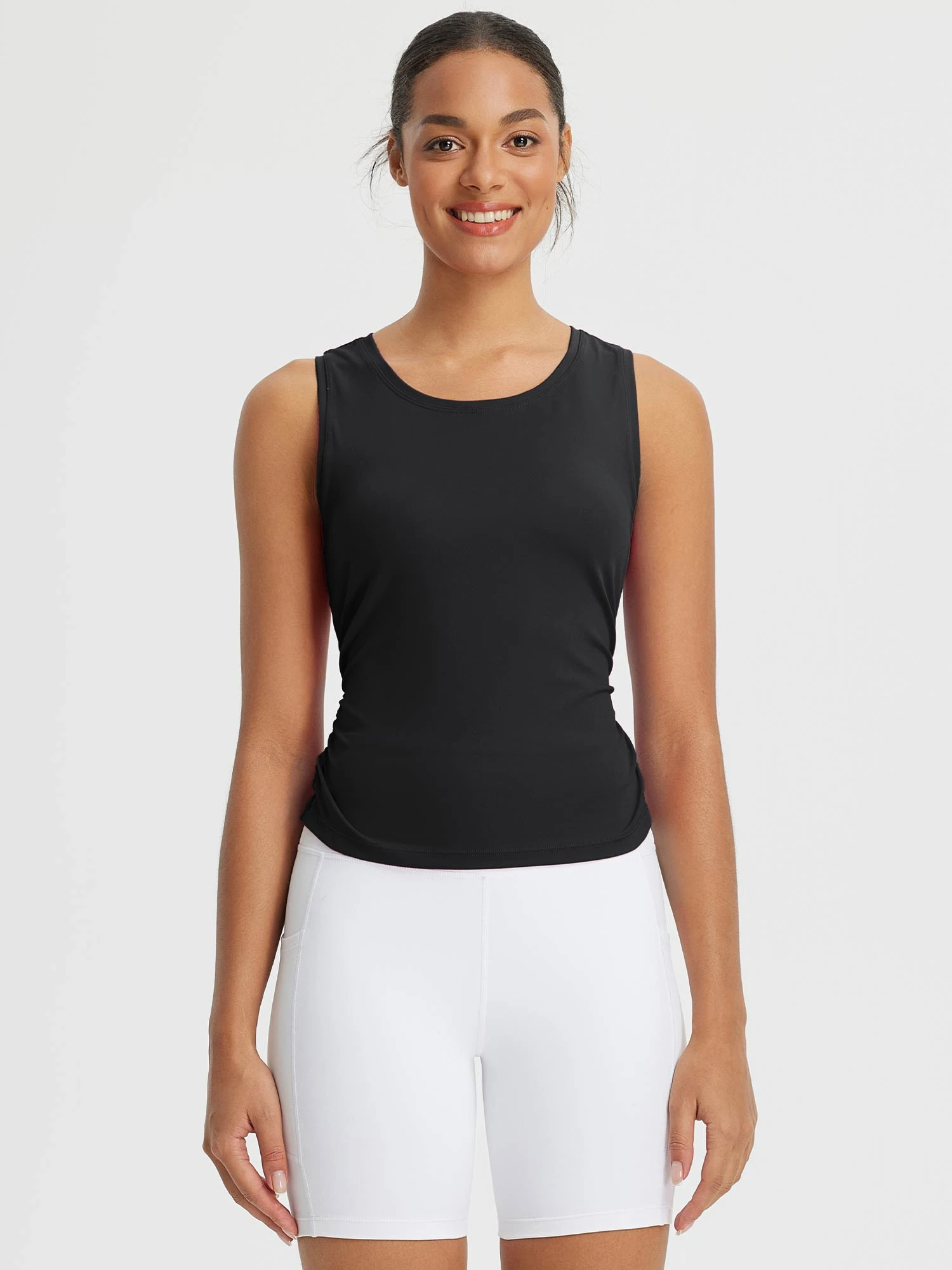 - Side Cinch Detail: Keeps the fit close and moves with you during exercise.