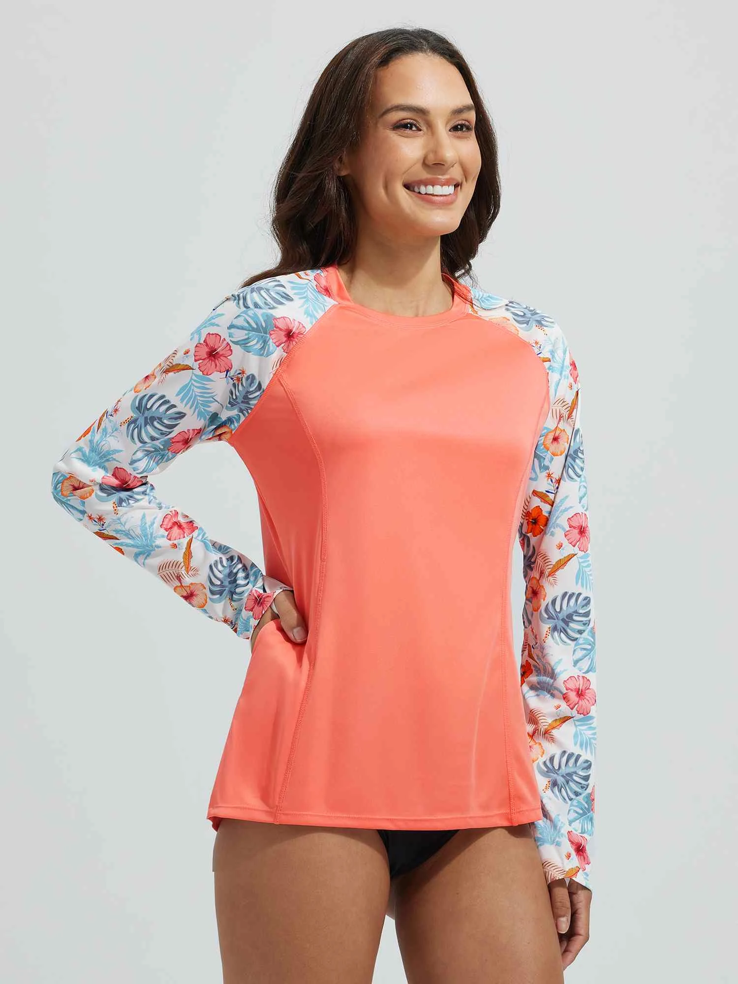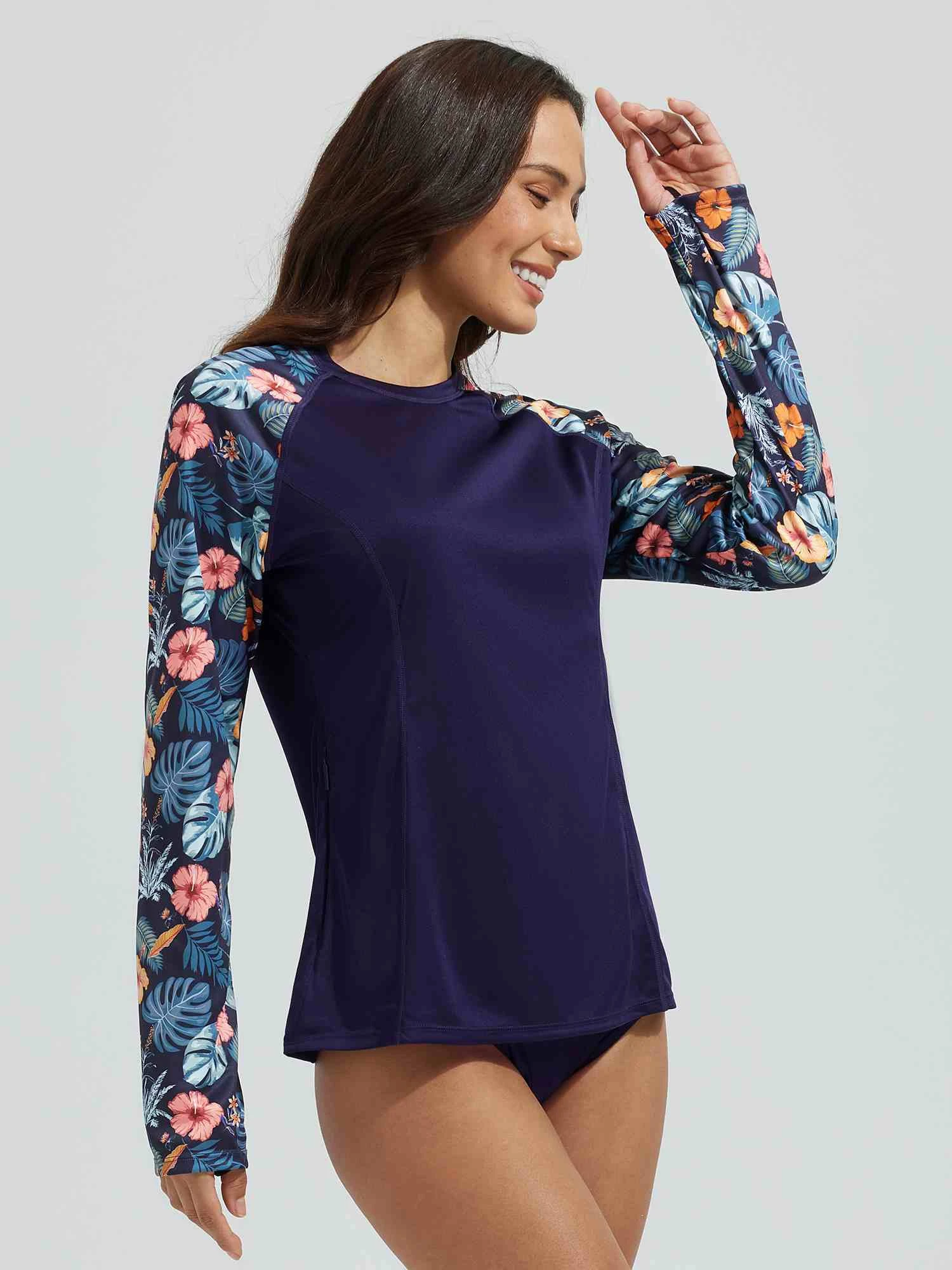 Zipper Pocket Design: women’s rash guard shirt with one side zippered pocket to keep your personal belongings safe, freeing your hands while at the beach or pool.