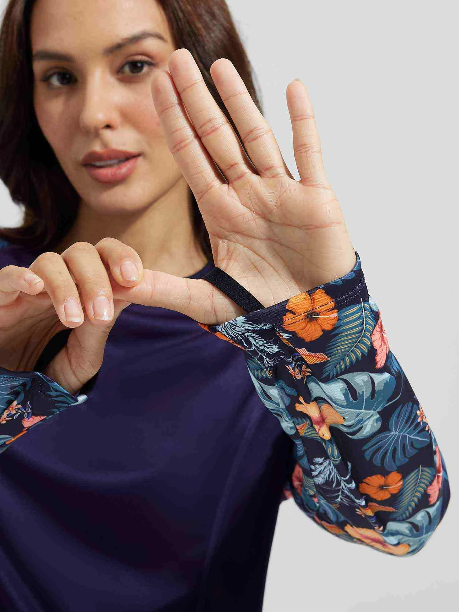 Thumbholes & Raglan sleeve: The thumbholes keep sleeves in place for extra coverage, without the cuffs riding up. Raglan sleeve design allows for freedom of movement during sports.