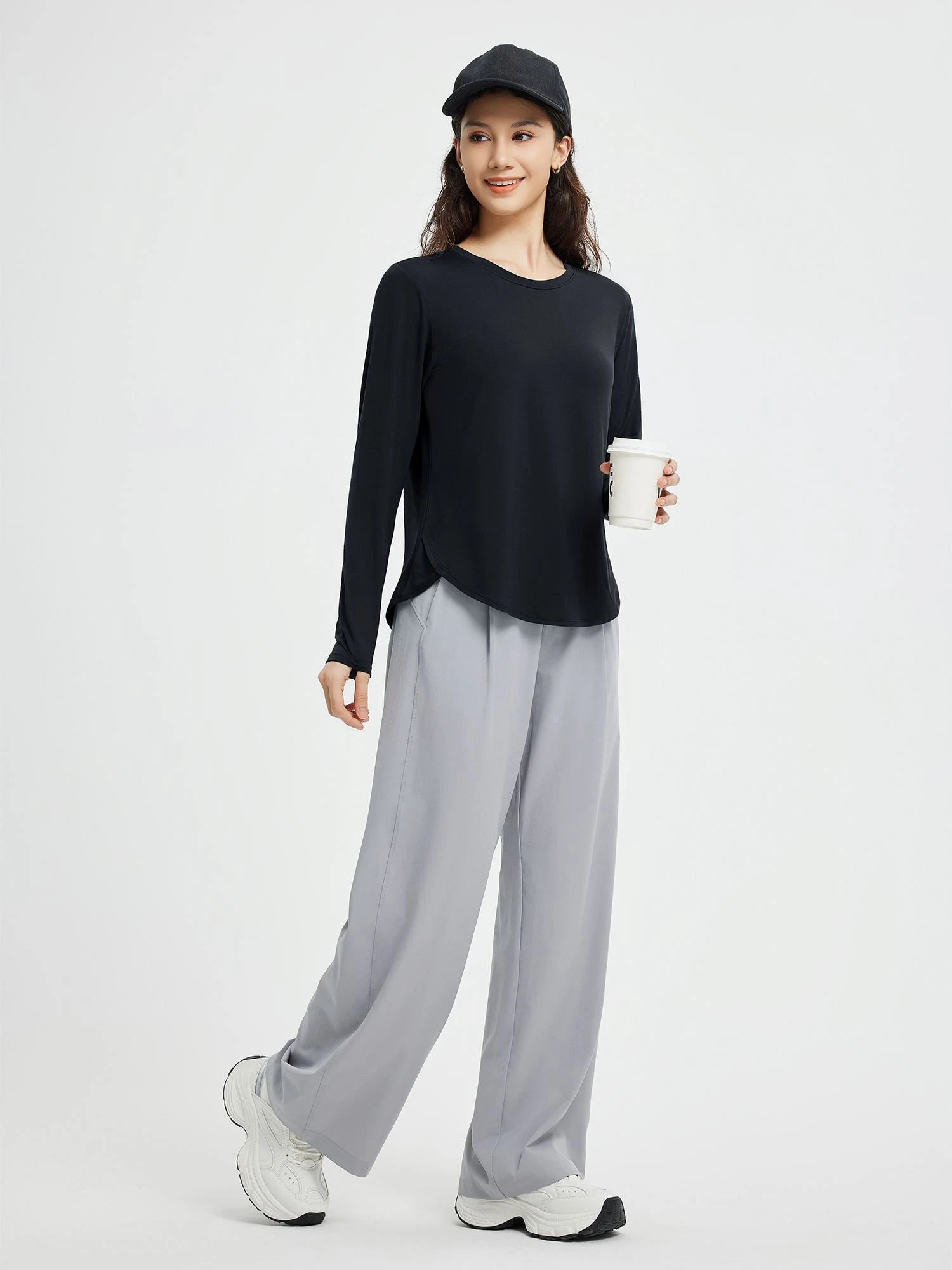 Long sleeve with crossover side slit hem for a stylish, flattering fit