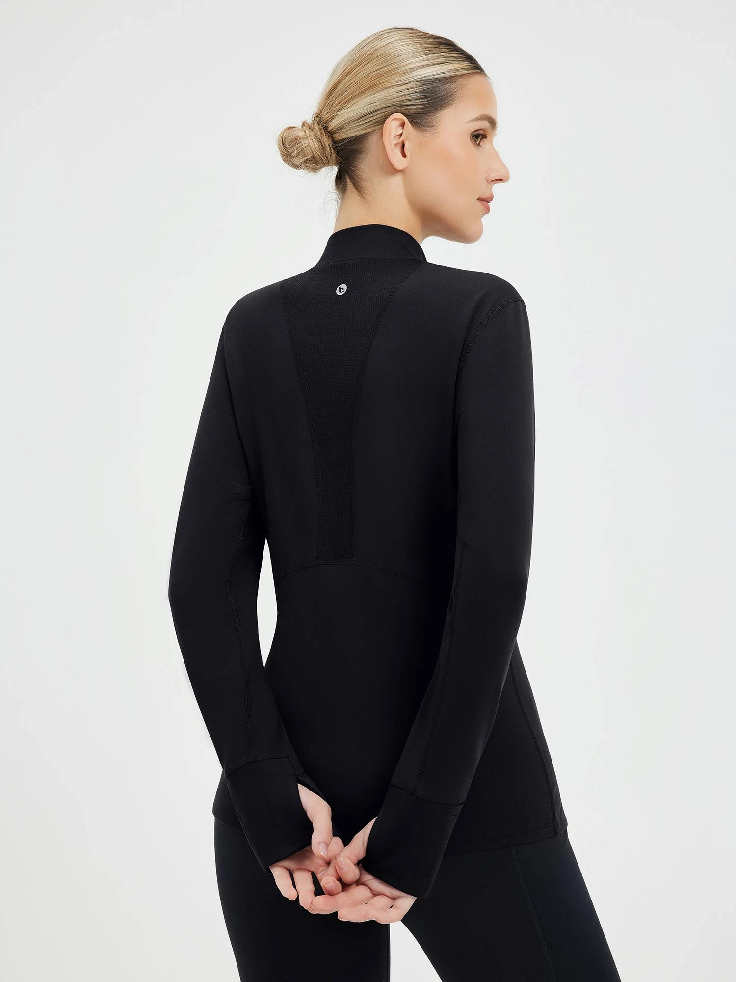 Thumb holes and glove-compatible cuffs for windproof comfort