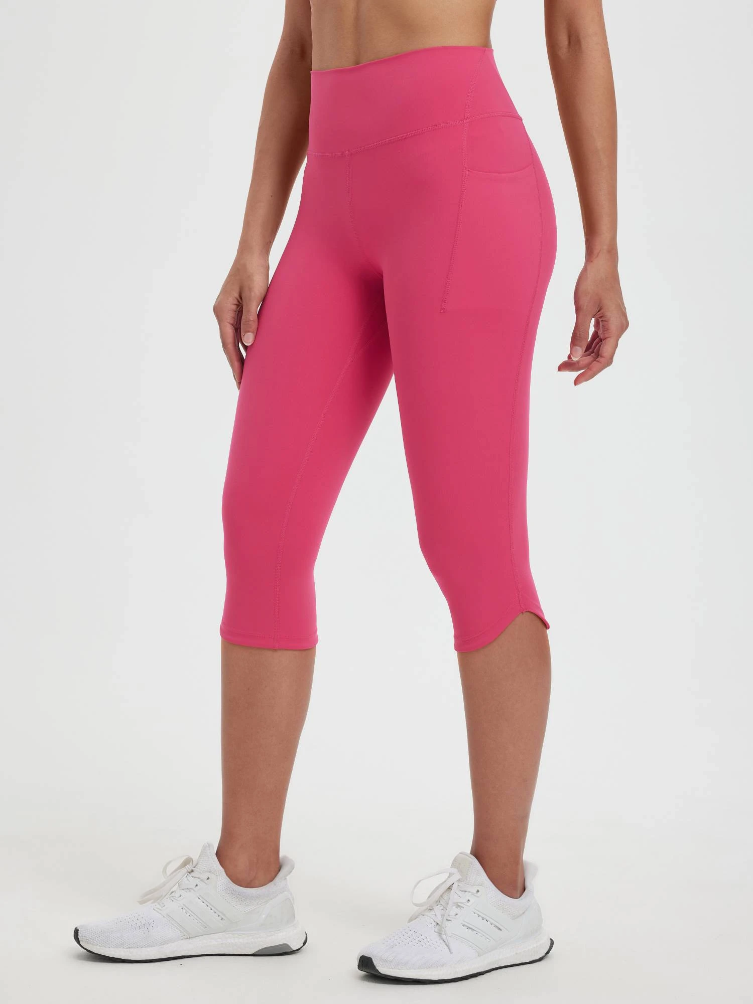 2 SIDE POCKETS: These yoga capris are thoughtfully equipped with two side pockets, infusing a minimalist aesthetic into the design, and offering a secure haven for your essentials. The reduced outer leg seams enhance the comfort of wear, making every movement a breeze