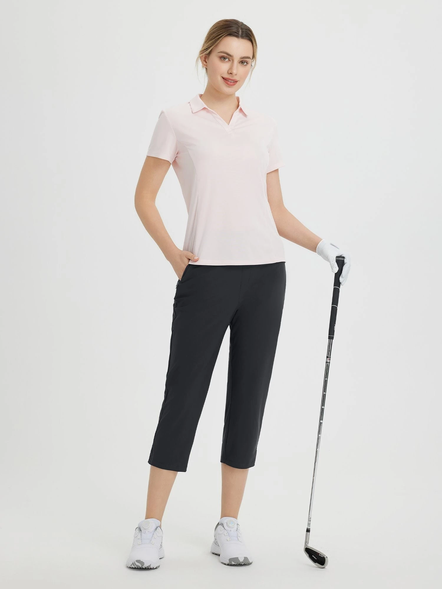 Soft & Stretchy: The fabric of these women’s capri pants is lightweight, quick-dry, rated UPF 50+, and non-see through. 4-way stretch for superior mobility and comfort during the golf swing.