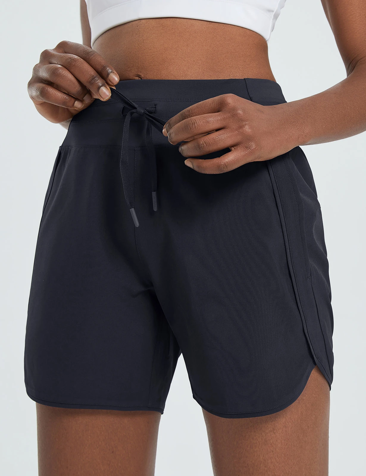 [Unlined] No underwear. They are lightweight and comfortable. You will never be concerned about the underwear chafing your skin [3.1″ Comfy Waistband] Soft and wide knit waistband with drawstring for reducing chafe and comfortable fit [5″ Inseam] Great length for thighs covered and won’t ride up. Side slit gives you extra room to move [3 Pockets] 1 back zipper pocket for secure storage, maximum for 6.7″ phone. 2 side pockets are deep enough but won’t stick out when you put in things