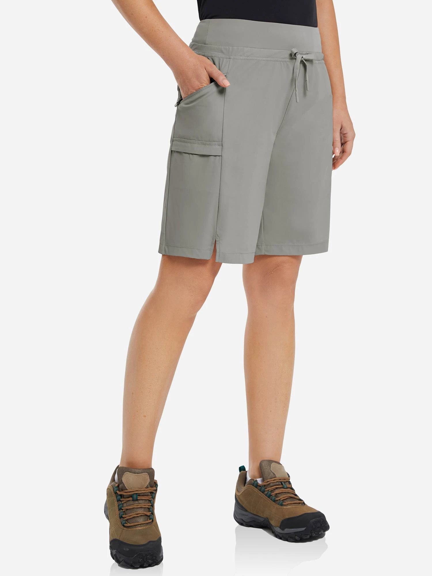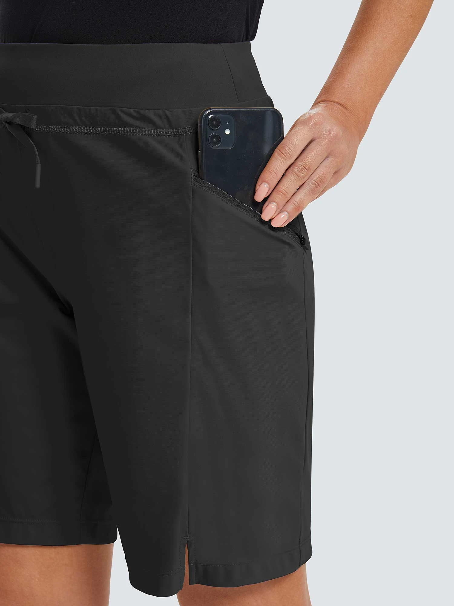 4 Zipper Pockets: These women’s shorts have 2 side zipper pockets, 1 cargo pocket, and 1 back pocket, deep enough for storing your phone, keys, credit cards, etc