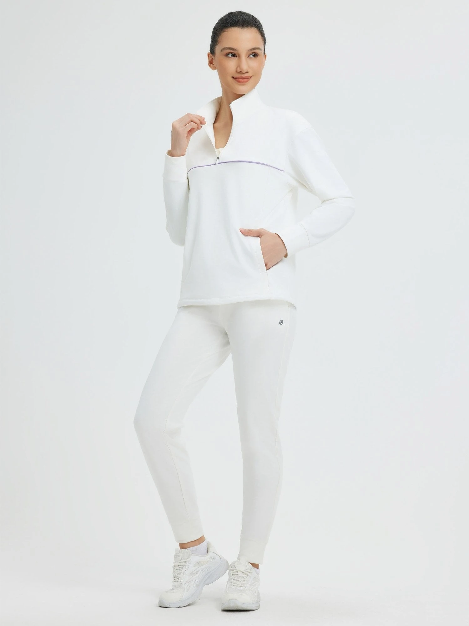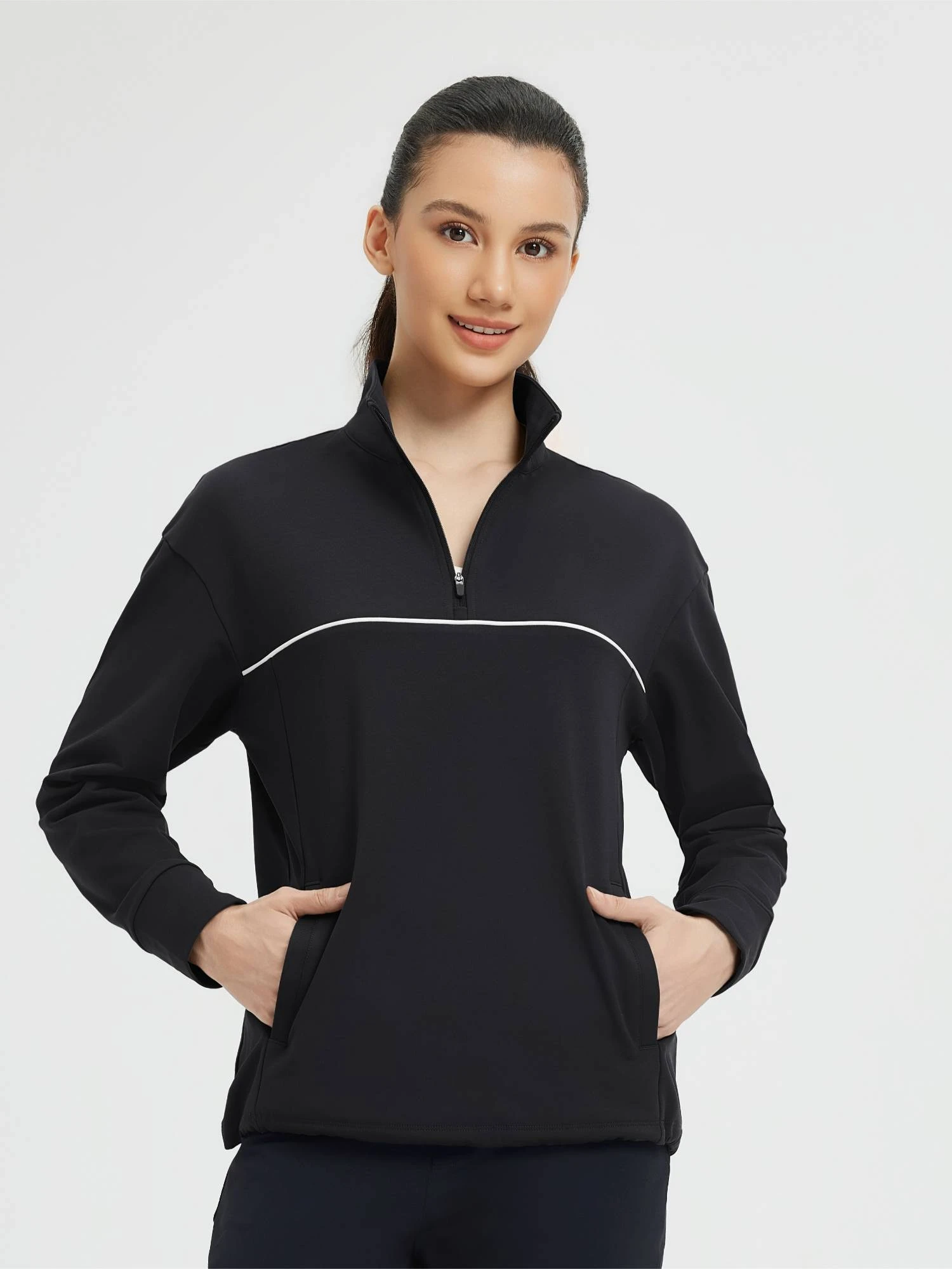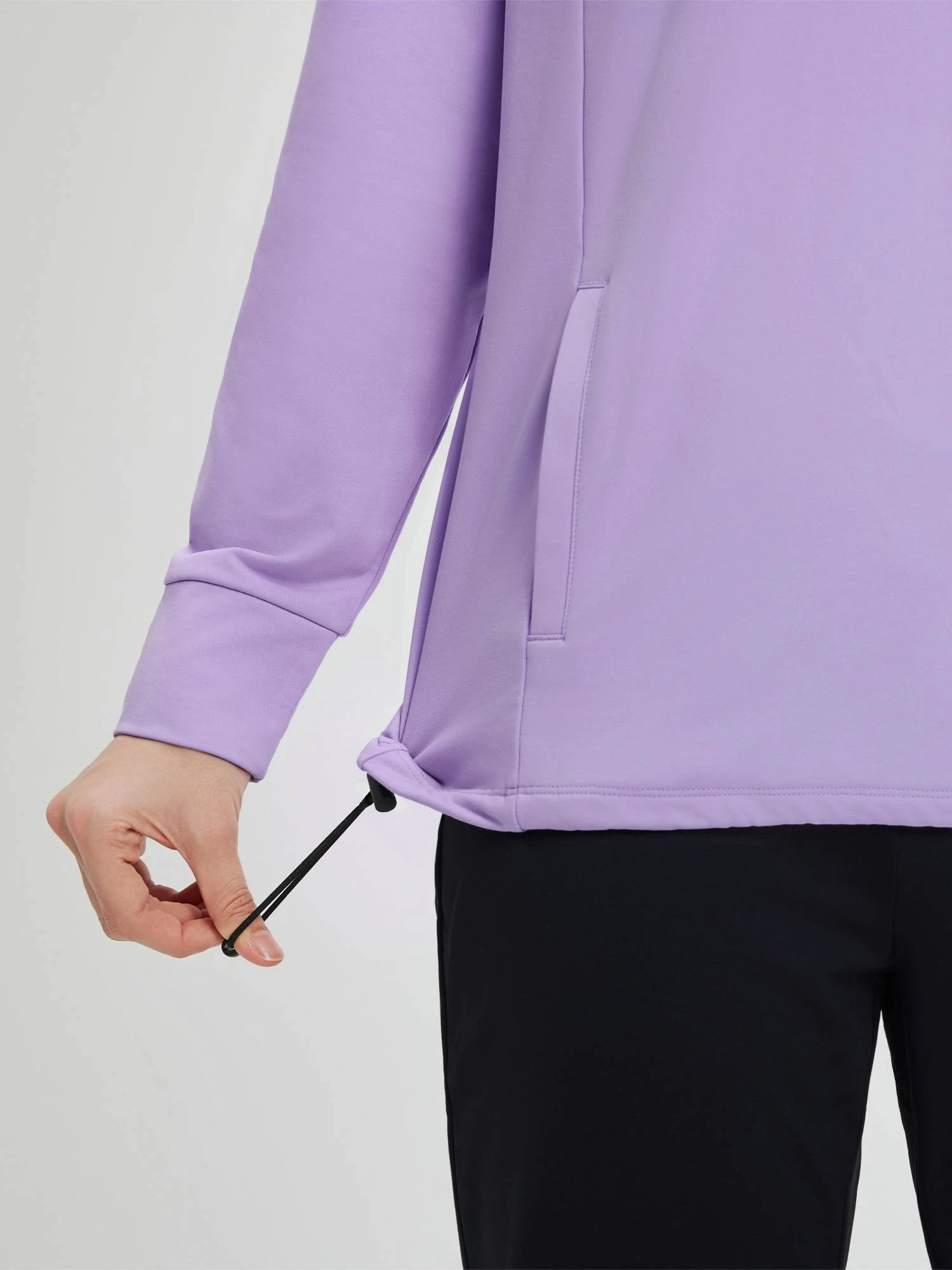 - Half-zip front with adjustable hem for ventilation and insulation