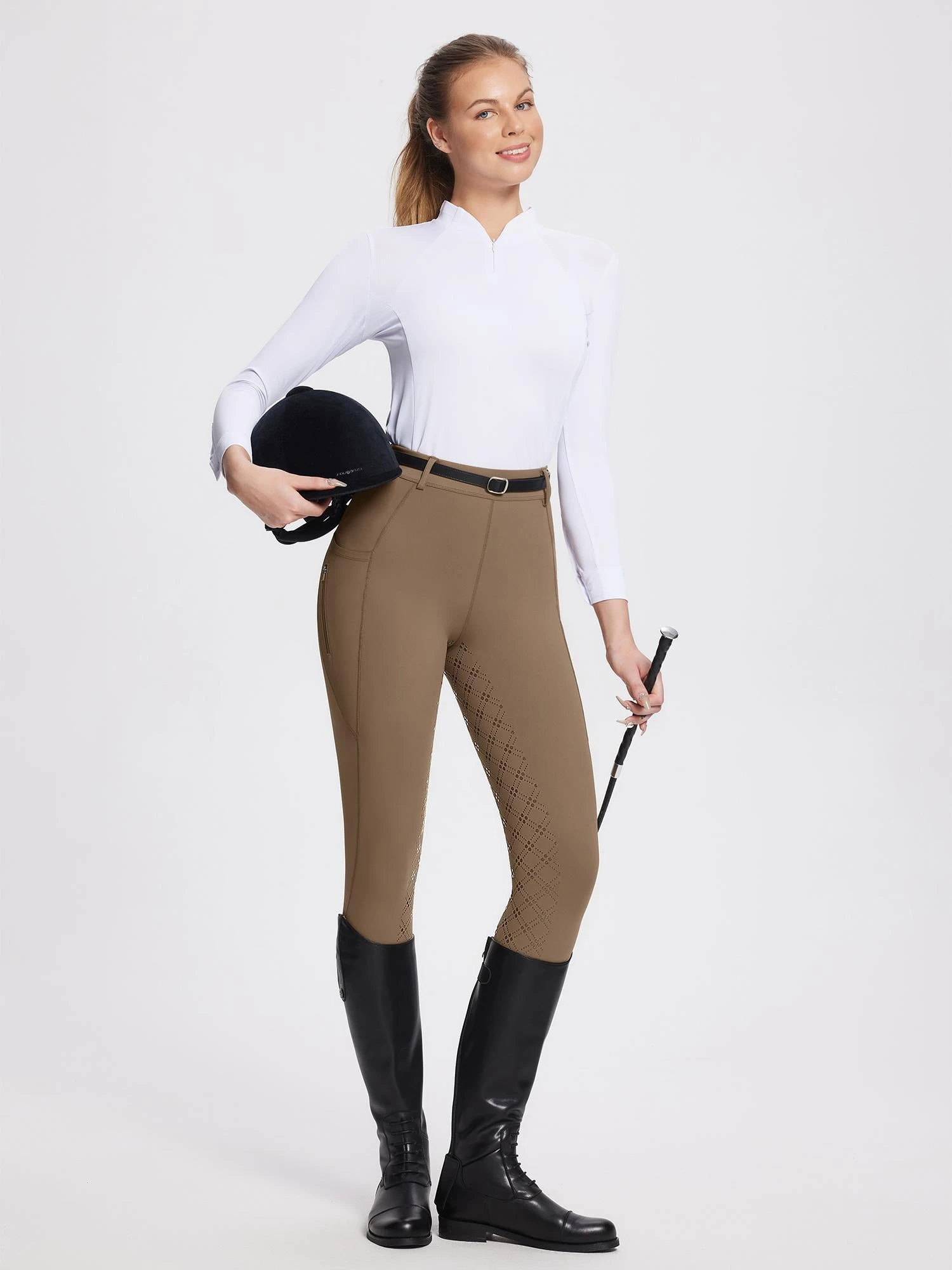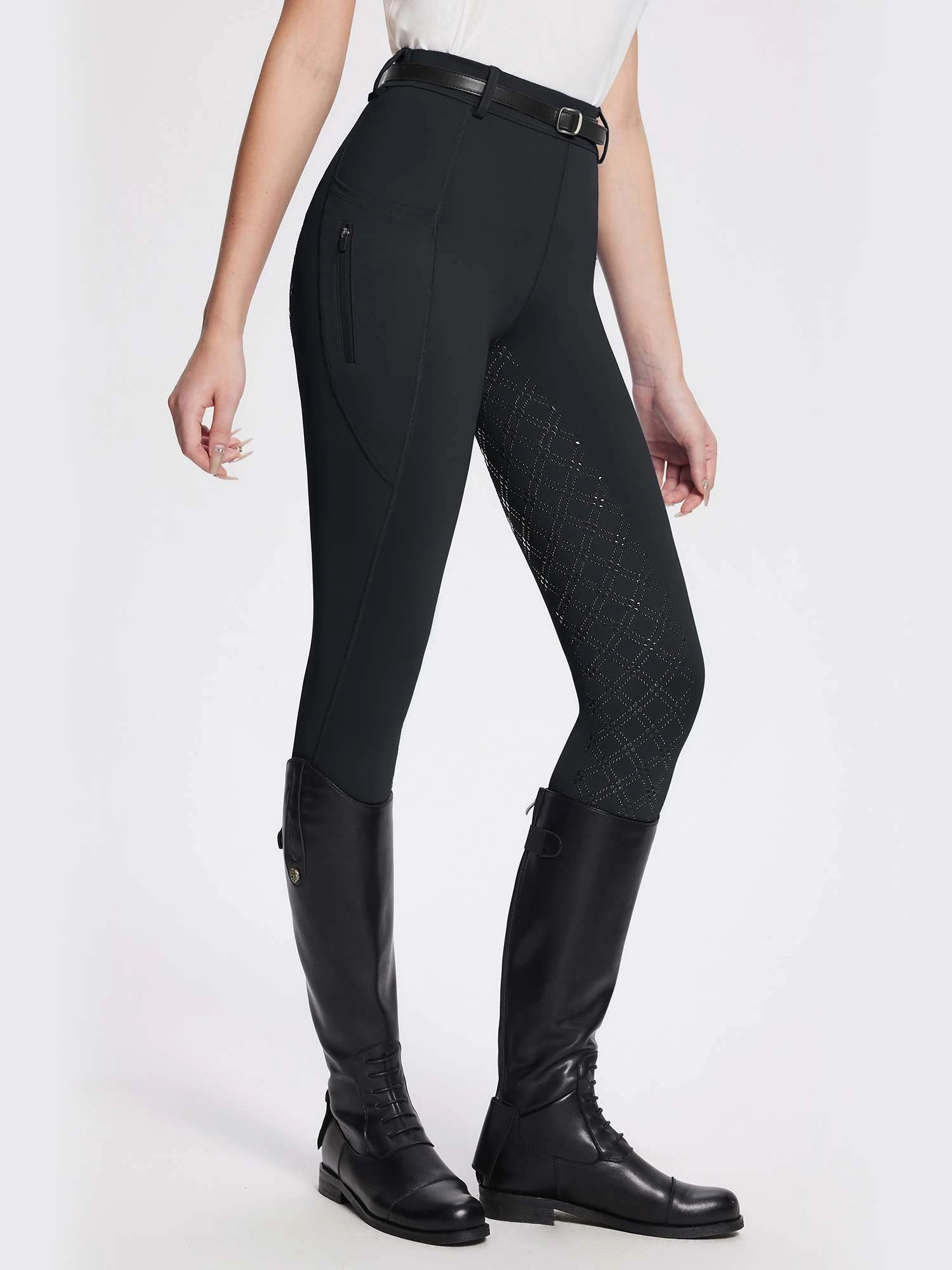 Stretchable Fabric: Our equestrian pants are made of a breathable, moisture-wicking, and four-way stretch fabric, which is designed to keep riders cool and comfortable during long hours in the saddle.