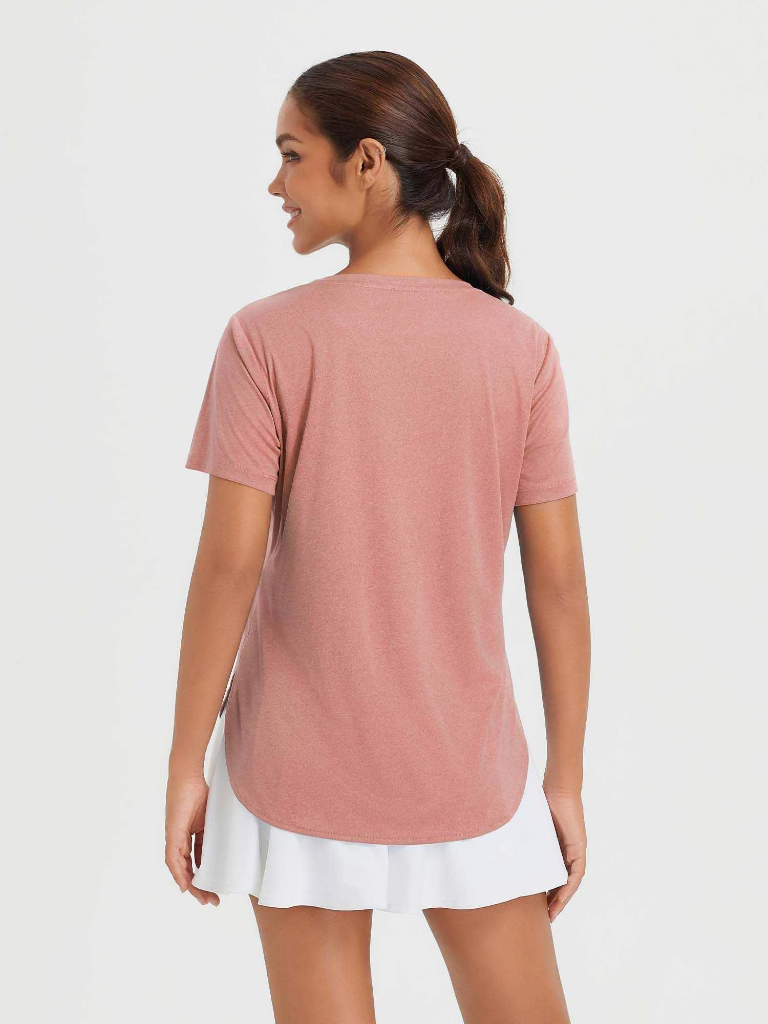 [High-Low Hem with Side Slits] This Sun shirt has great draping and a loose fit, avoiding clinging and showing lumps. Its high-low hem gives good hip coverage and won’t hinder your movements in any direction. [Breathable & Moisture-wicking] The short sleeves UPF50+ UV Shirts allow air to swirl around arms freely, unlike stuffy long sleeves. When hiking or running outdoors, it swiftly vents heat and sweat, keeping you dry and cozy to relish exercise. [Lightweight & Soft] This workout top features a lightweight and soft fabric, making you feel as comfortable as if you were wearing a second skin. Even when you’re sweating profusely, there’s no itchy or sticky discomfort at all. [UPF 50+ Sun Protection Shirts] This top has a UPF50+, capable of blocking up to 98% of harmful ultraviolet rays, minimizing skin damage. What’s more, its excellent sun protection won’t diminish even after multiple washes. [Mutiple Occasions] The back hem of the crew neck top is long enough to just cover the hips, making it suitable for everyday sun protection, fitness, vacation, work, gym workouts and fishing.