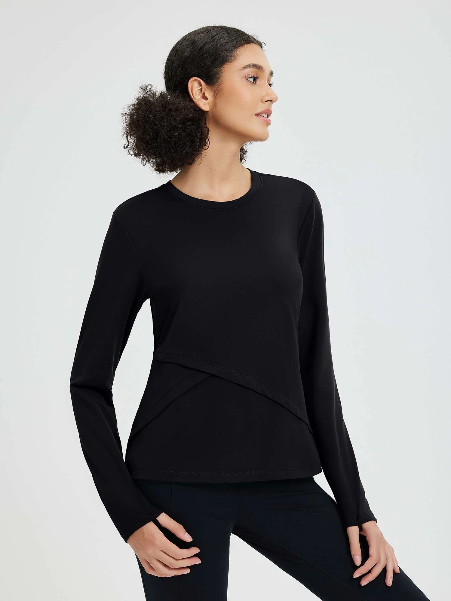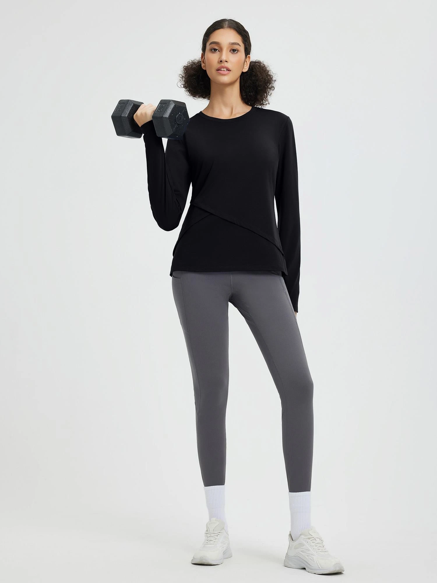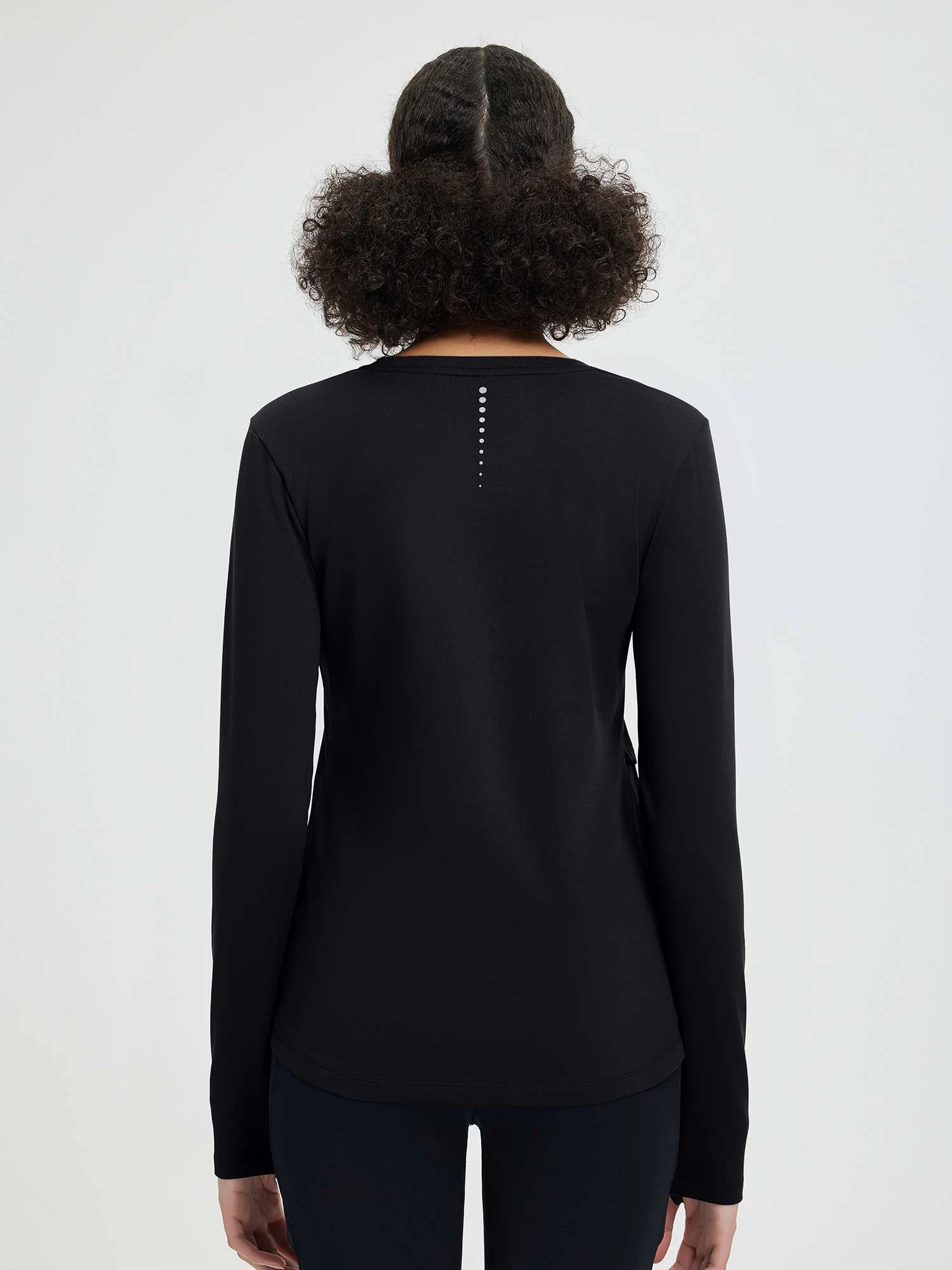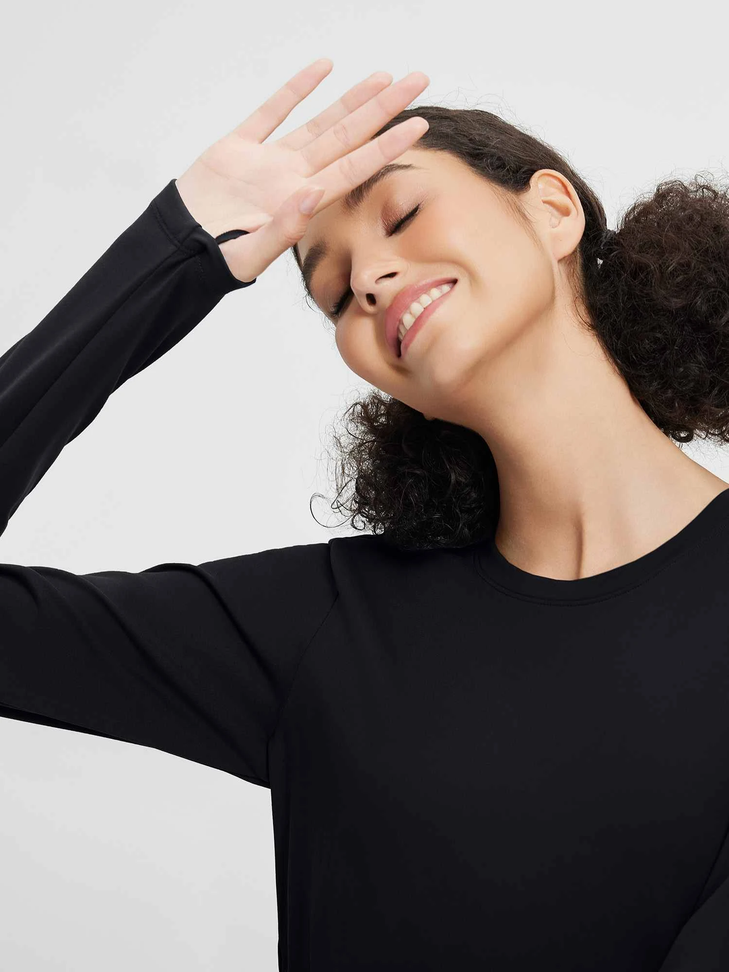 - Stretchy, body-hugging fit with thumbholes to keep sleeves secure