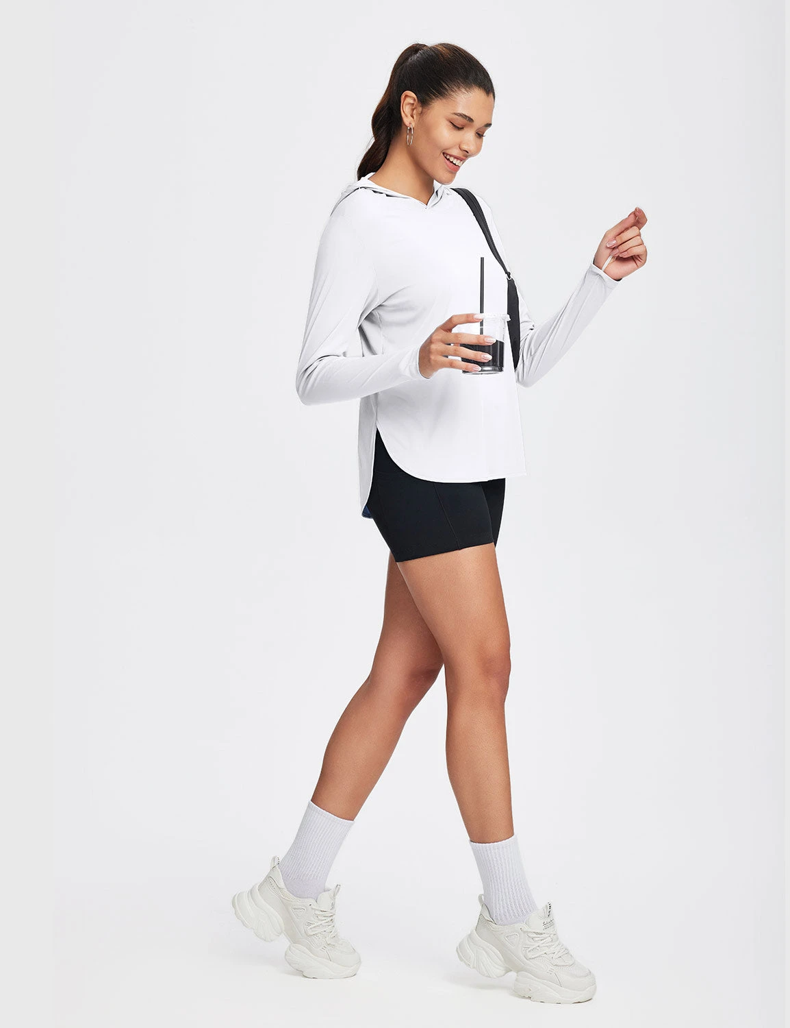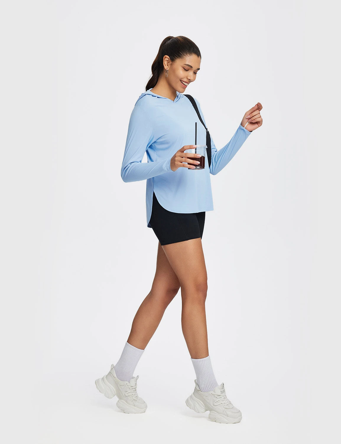 - Curved Hem with Side Slits: Rounded hem reduces bunching and increases comfort, any workout activities are better with hiking shirts