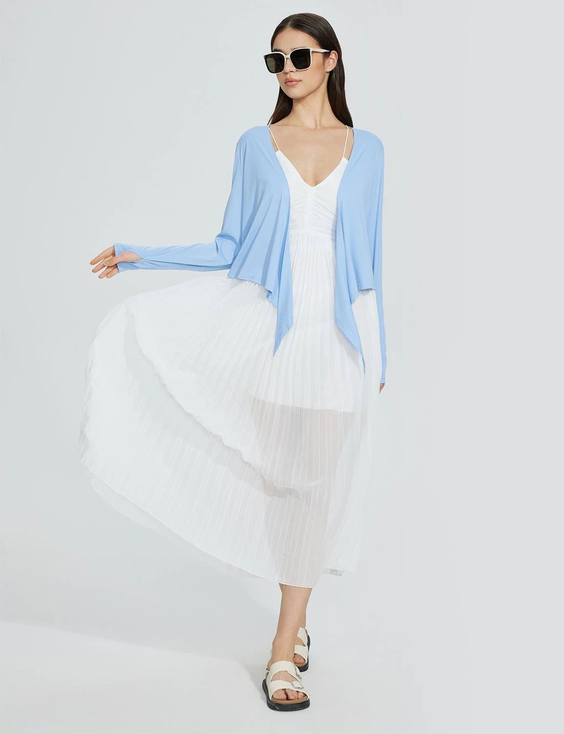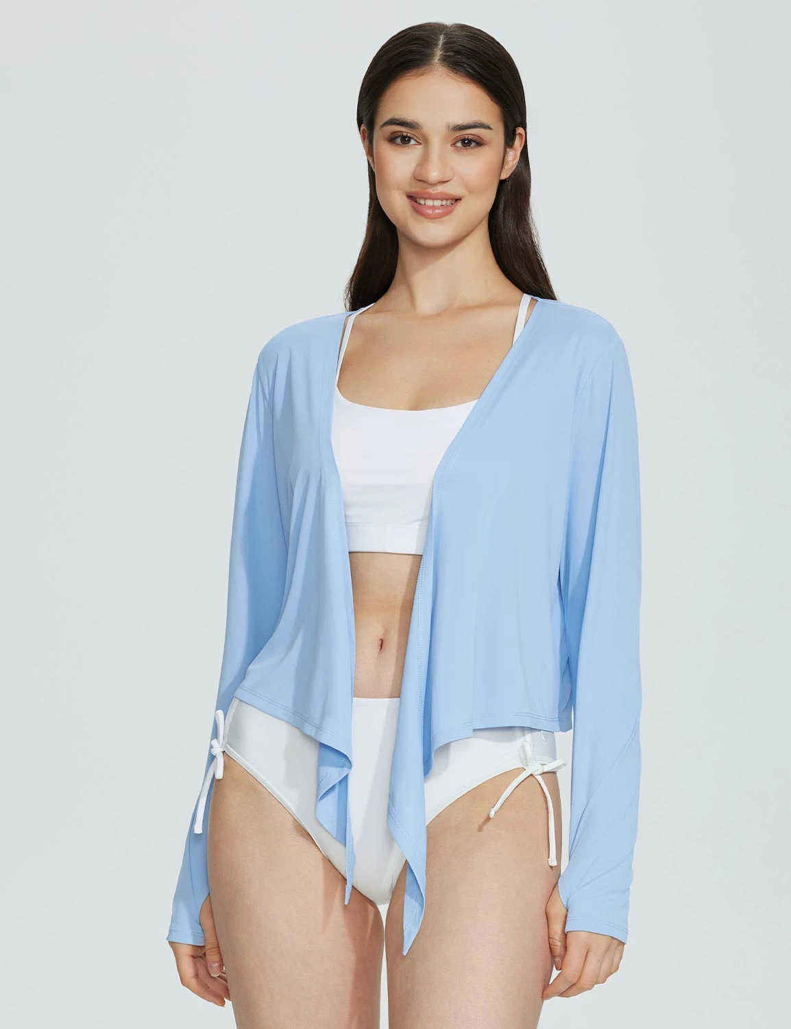 - Cropped cardigan style: Looks more flattering than ordinary sun shirts