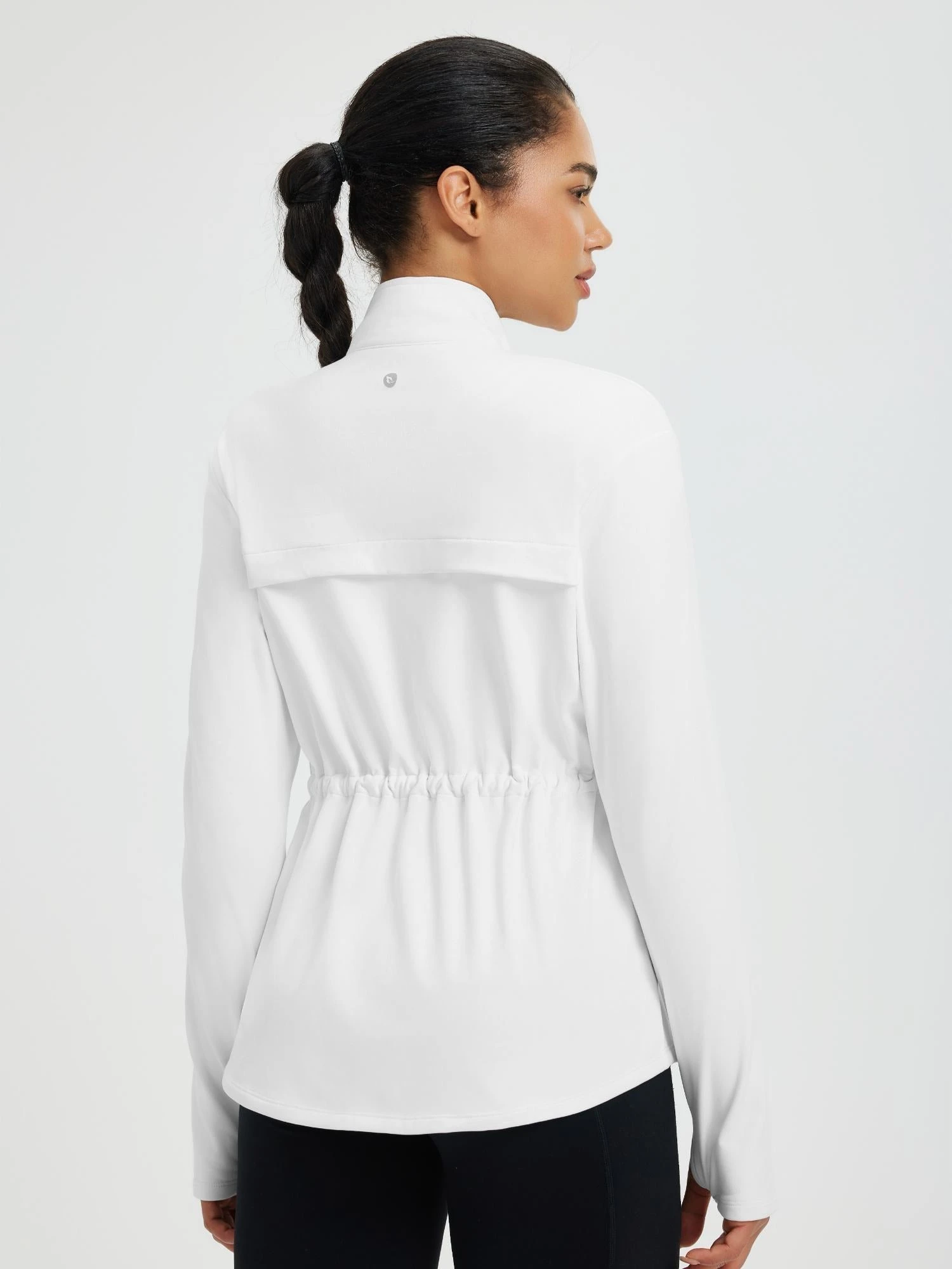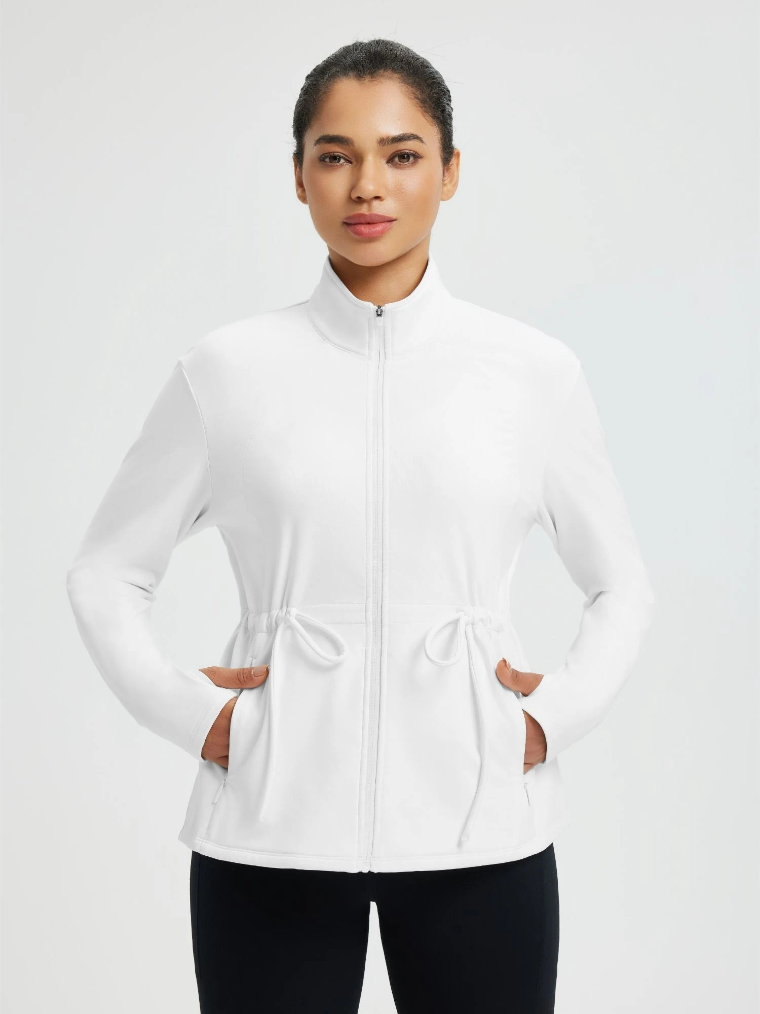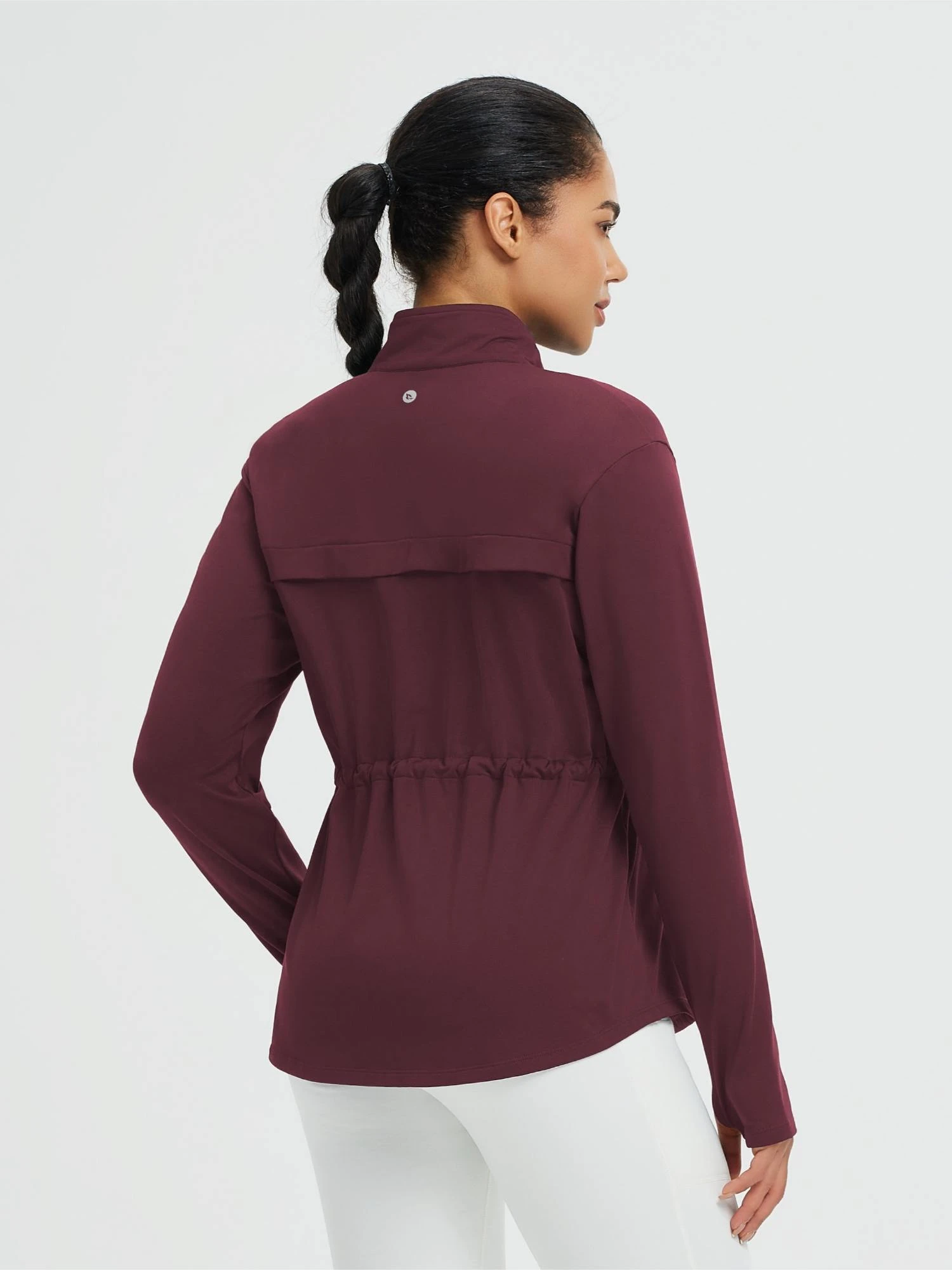 - Full-zip stand collar converts from relaxed to wind-blocking shield
